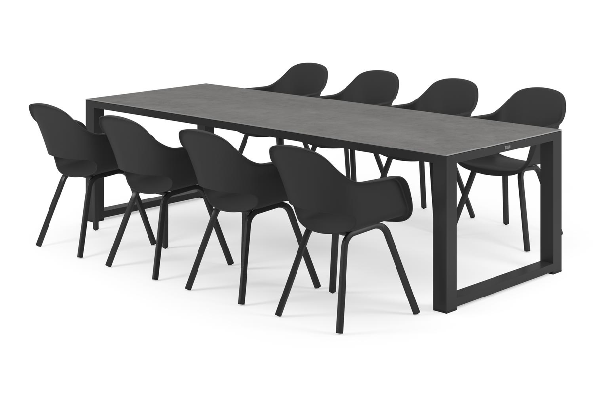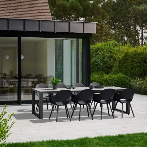 Ensemble de jardin Livo se distingue immédiatement par son pied continu caractéristique de chaque côté. Elle offre ainsi un design unique et dégage de la solidité.