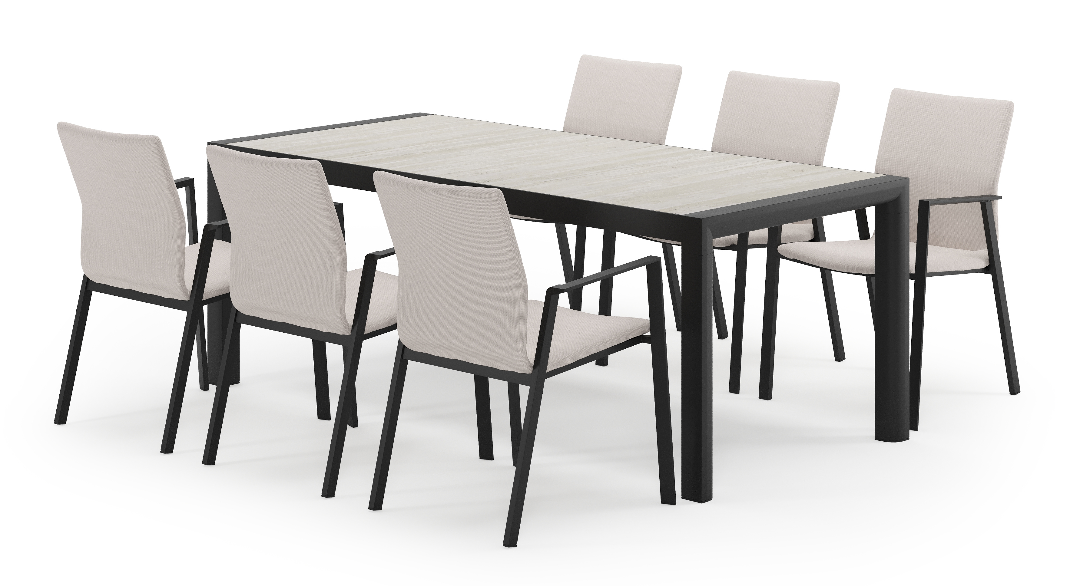 Un plateau de table avec des carreaux en céramique est constitué de céramique cuite, garantissant une surface très solide et lourde. Les carreaux en céramique sont non seulement faciles à entretenir et résistants aux rayures, mais ils supportent aussi la pluie et le gel.