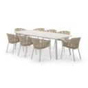 L'ensemble de jardin Mosa est facilement reconnaissable à son plateau rectangulaire arrondi et à ses pieds biseautés vers l'extérieur. La table a un aspect moderne avec une touche d'élégance.