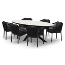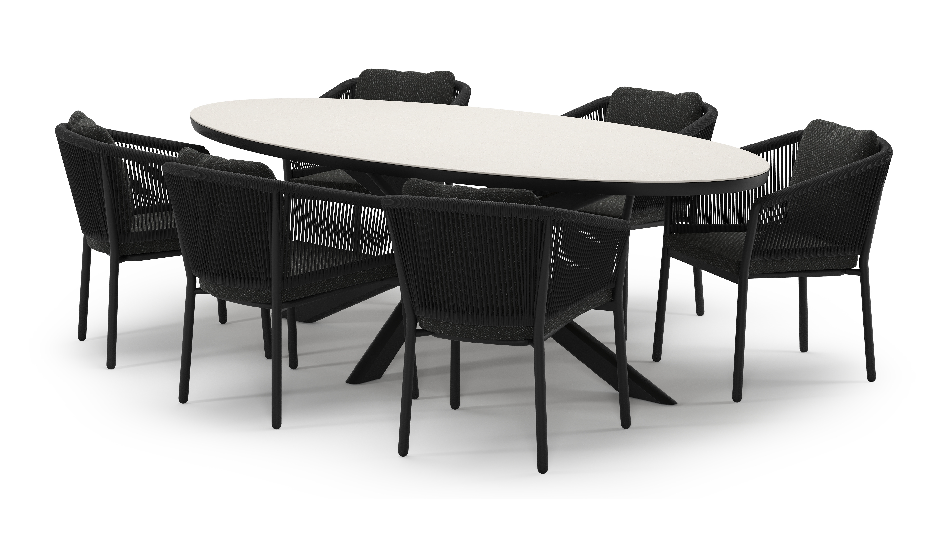 L'ensemble de jardin Pamplona présente une allure robuste et contemporaine. Son piètement croisé distinctif apporte une touche de caractère et de solidité au design. L’armature de la table de jardin est fabriquée en aluminium inoxydable, un matériau solide mais léger, facile à déplacer. La surface est lisse, ce qui empêche la saleté d’adhérer et facilite l’entretien. Le revêtement en poudre assure la résistance aux UV et aux intempéries de votre mobilier. Un plateau de table de jardin en sintered stone contient différents types de minéraux cuits sous une pression encore plus élevée que la céramique, tout en offrant les mêmes propriétés. Le matériau est extrêmement solide. Il résiste au gel, à la chaleur et aux rayures, et se nettoie facilement.