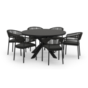 L'ensemble de jardin Pamplona offre un aspect contemporain et robuste grâce à sa forme arrondie et à ses pieds croisés remarquables. Cet ensemble de jardin est idéal pour une grande réception.