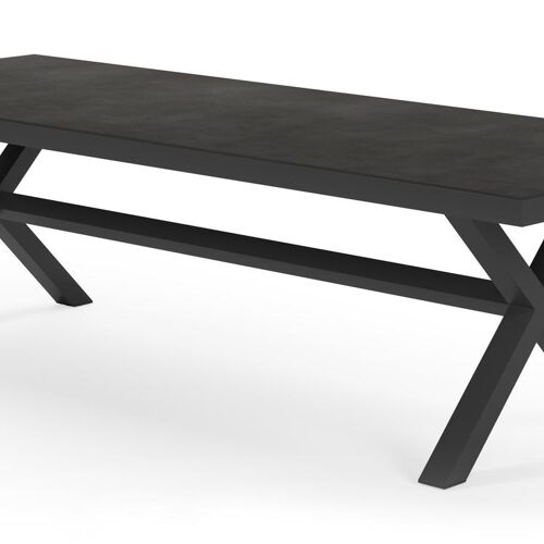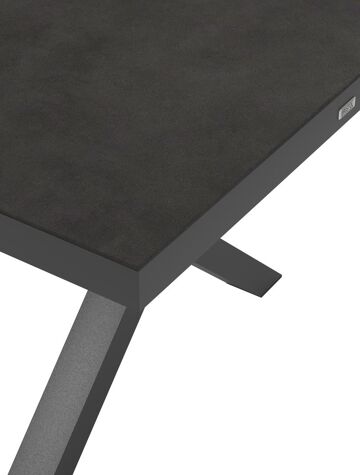L’armature de la table est en aluminium inoxydable, un matériau robuste mais léger, qui est facile à déplacer. La surface présente une finition lisse, de sorte qu’elle n’attire pas la saleté et est facile à entretenir. Le revêtement poudré garantit la résistance aux UV et aux intempéries de votre meuble.