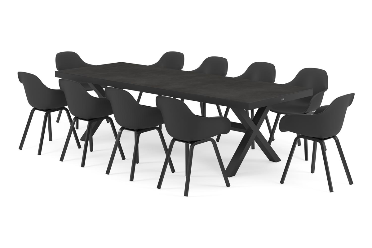 Ensemble de jardin Reza a un piètement croisé exceptionnel et un cadre solide et épais entourant le plateau de table. Une barre traverse le milieu de la table comme soutien supplémentaire de l’armature.