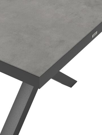 L’armature de la table est en aluminium inoxydable, un matériau robuste mais léger, qui est facile à déplacer. La surface présente une finition lisse, de sorte qu’elle n’attire pas la saleté et est facile à entretenir. Le revêtement poudré garantit la résistance aux UV et aux intempéries de votre meuble.