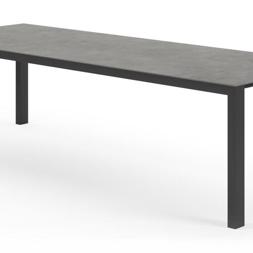 L’armature de la table est en aluminium inoxydable, un matériau robuste mais léger, qui est facile à déplacer. La surface présente une finition lisse, de sorte qu’elle n’attire pas la saleté et est facile à entretenir. Le revêtement poudré garantit la résistance aux UV et aux intempéries de votre meuble.