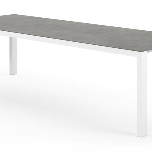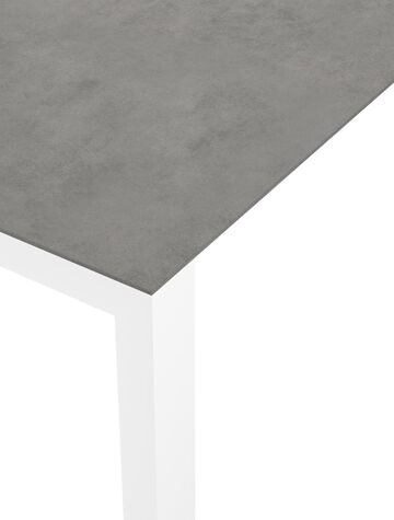 L’armature de la table est en aluminium inoxydable, un matériau robuste mais léger, qui est facile à déplacer. La surface présente une finition lisse, de sorte qu’elle n’attire pas la saleté et est facile à entretenir. Le revêtement poudré garantit la résistance aux UV et aux intempéries de votre meuble.