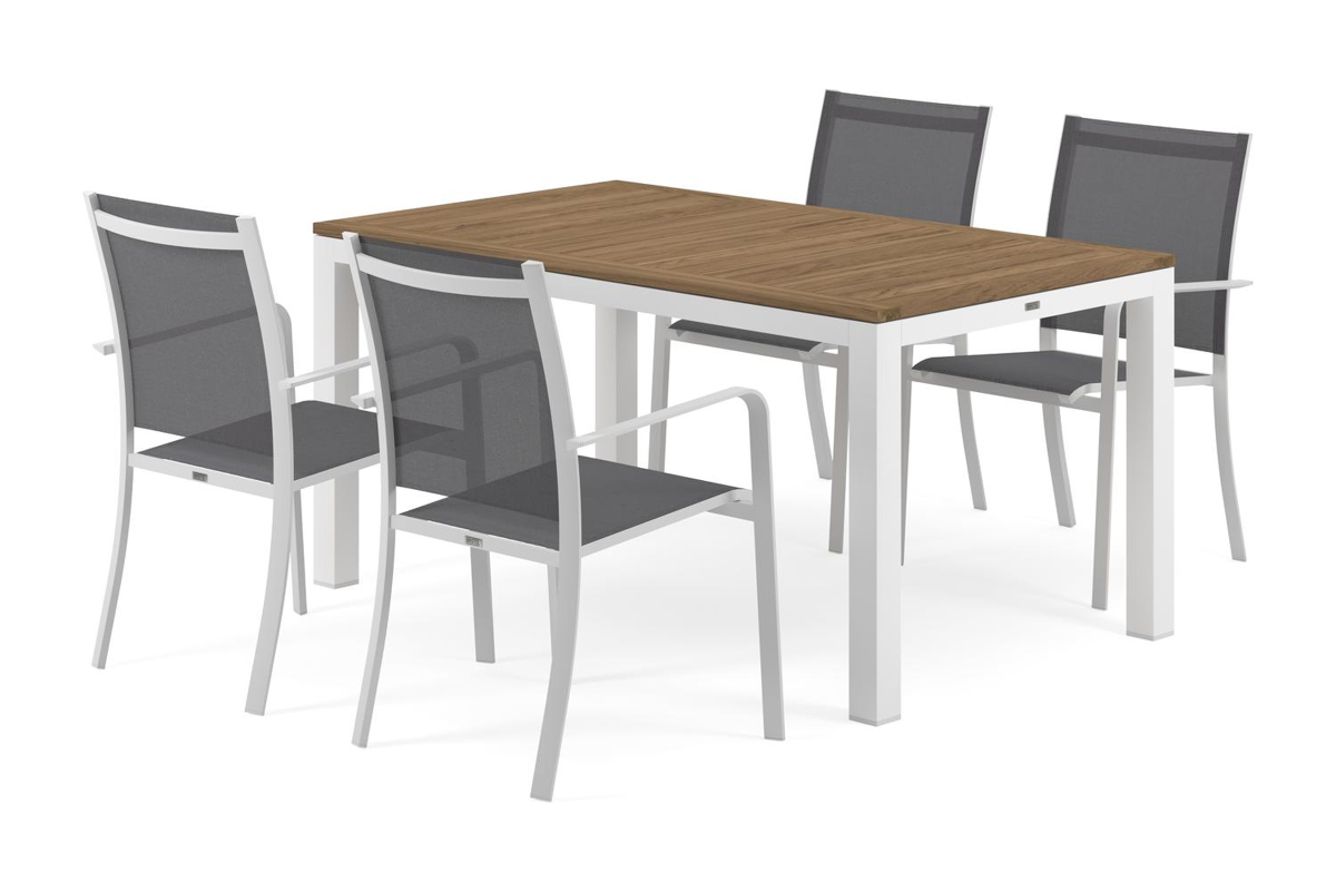 Ensemble de jardin Varese a un design minimaliste qui se marie parfaitement avec tous les environnements. La table a une finition raffinée et un plateau plus large, offrant une place supplémentaire aux extrémités.
