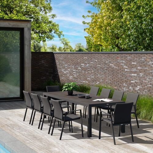 L'ensemble de jardin Varese a un design minimaliste qui se marie parfaitement avec tous les environnements. La table a une finition raffinée et un plateau plus large, offrant une place supplémentaire aux extrémités.