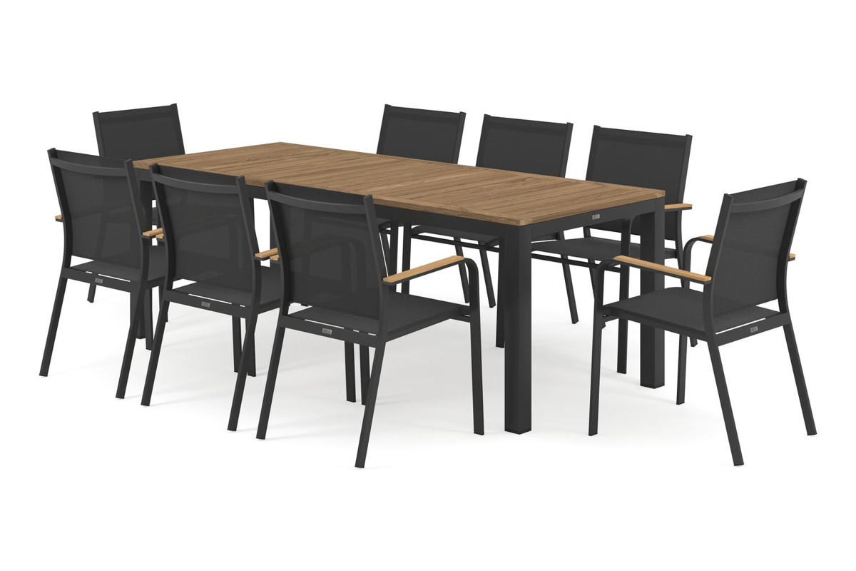 L'ensemble de jardin Varese a un design minimaliste qui se marie parfaitement avec tous les environnements. La table a une finition raffinée et un plateau plus large, offrant une place supplémentaire aux extrémités.
