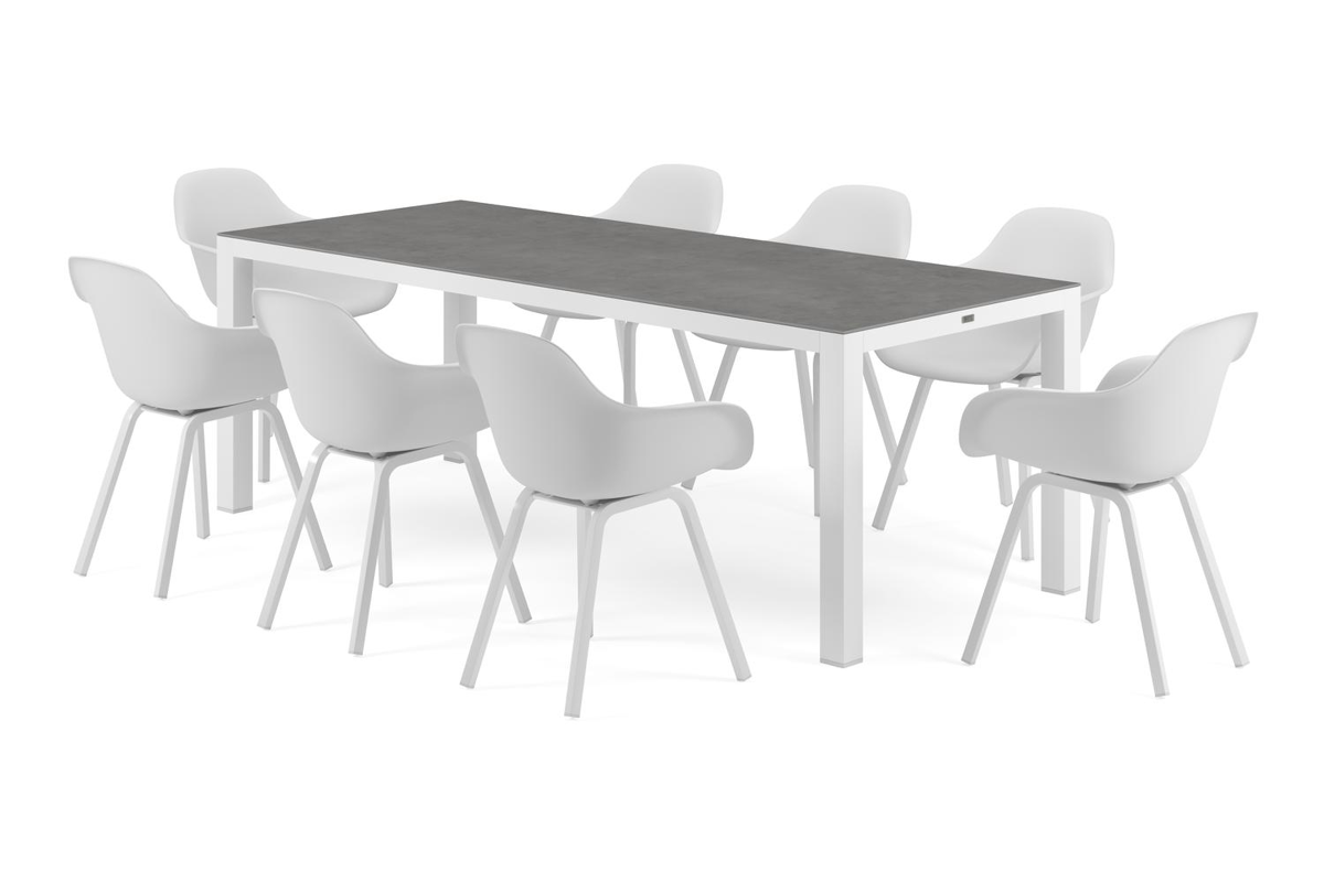 Ensemble de jardin Varese en aluminium blanc avec plateau de table en céramique pleine gris et 8 chaises de jardin Puglia | Exterioo