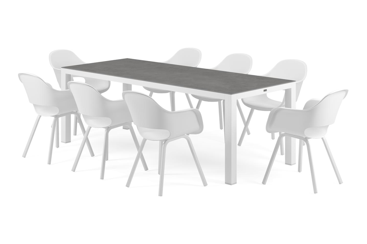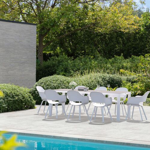 Ensemble de jardin Varese a un design minimaliste qui se marie parfaitement avec tous les environnements. La table a une finition raffinée et un plateau plus large, offrant une place supplémentaire aux extrémités.