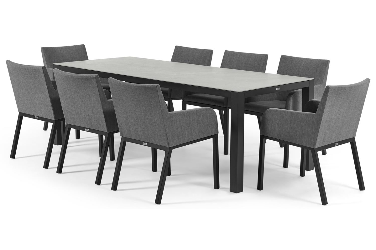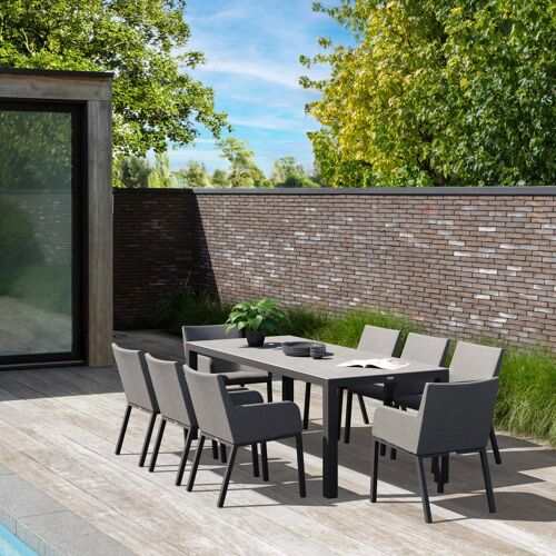 Ensemble de jardin Varese a un design minimaliste qui se marie parfaitement avec tous les environnements. La table a une finition raffinée et un plateau plus large, offrant une place supplémentaire aux extrémités.