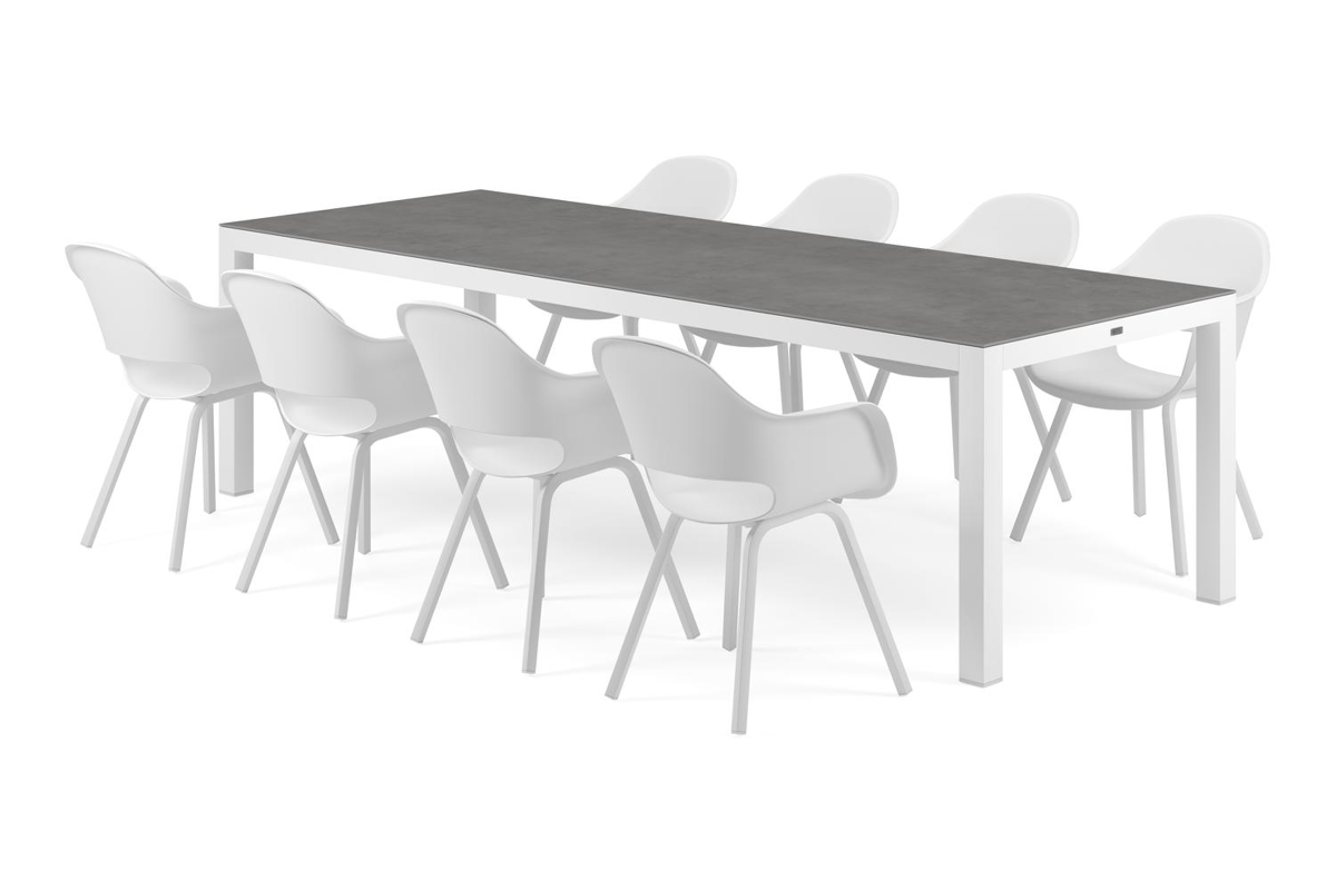 Ensemble de jardin Varese a un design minimaliste qui se marie parfaitement avec tous les environnements. La table a une finition raffinée et un plateau plus large, offrant une place supplémentaire aux extrémités.