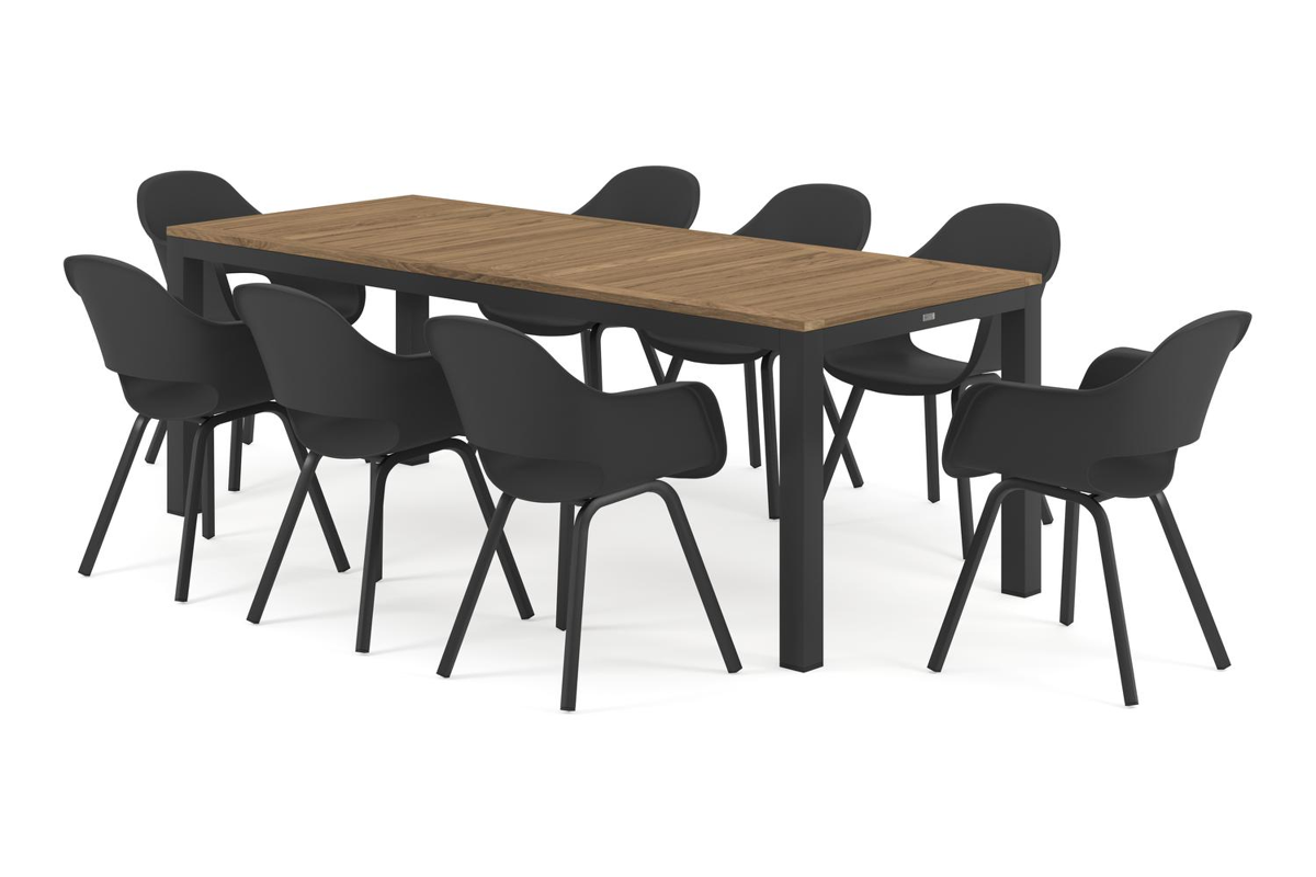 Ensemble de jardin Varese en aluminium noir avec plateau de table en teck naturel et 8 chaises de jardin Artena | Exterioo