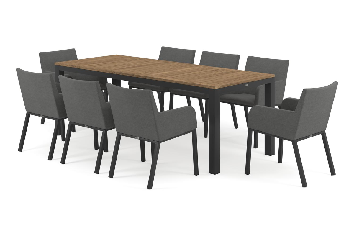 Ensemble de jardin Varese a un design minimaliste qui se marie parfaitement avec tous les environnements. La table a une finition raffinée et un plateau plus large, offrant une place supplémentaire aux extrémités.
