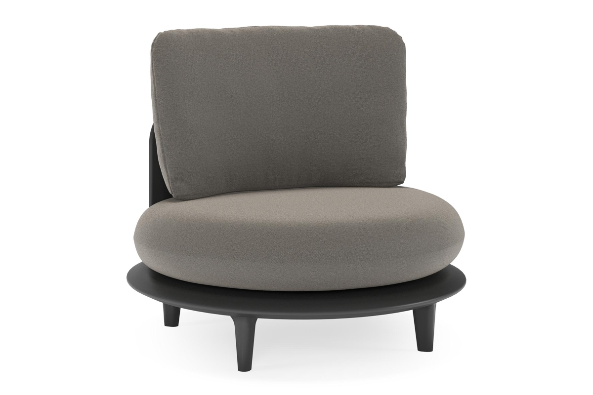 Fauteuil de jardin Bomero en aluminium noir et coussins en all weather sunbrella® luxe natte dark taupe | Exterioo