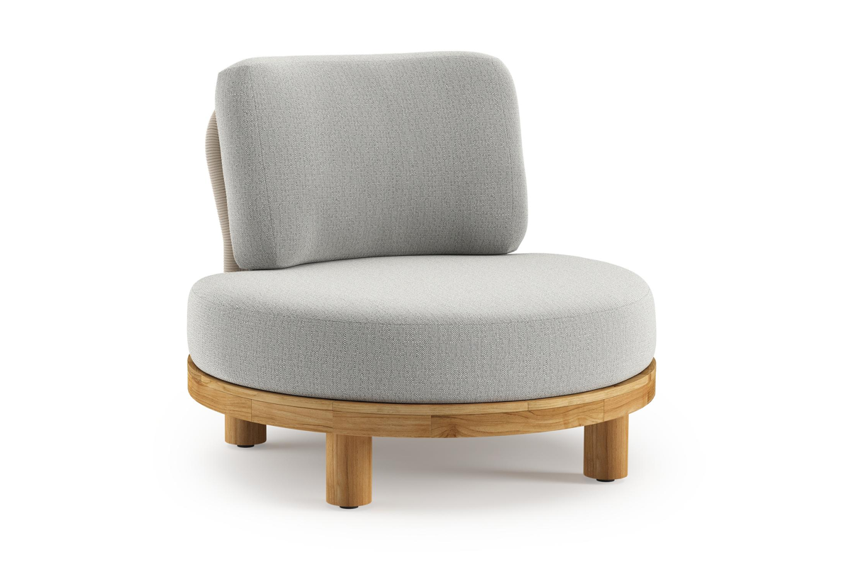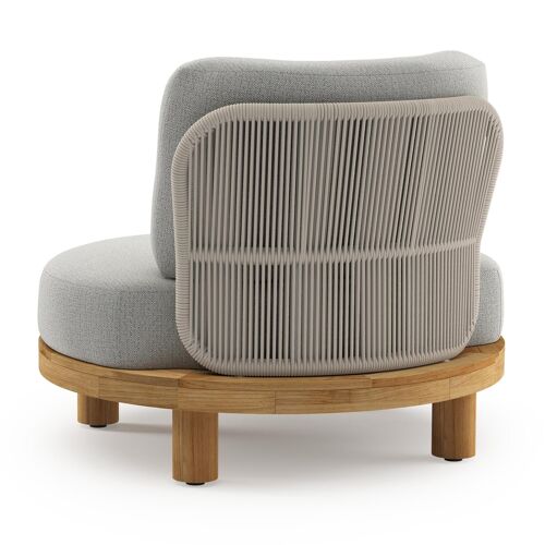 Fauteuil de jardin Donato en teck et corde ronde tissée verticalement beige et coussins en all weather sunbrella® luxe Savane Nimbus | Exterioo