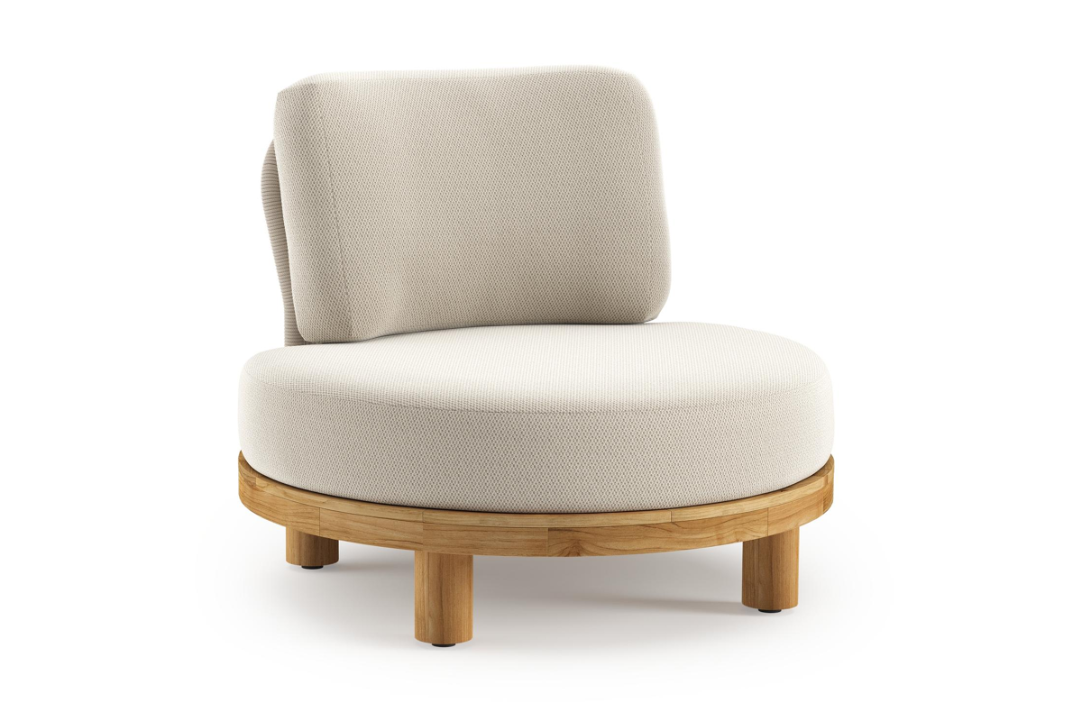 Fauteuil de jardin Donato en teck et corde ronde tissée verticalement beige et coussins en all weather sunbrella® luxe Lopi Marble | Exterioo
