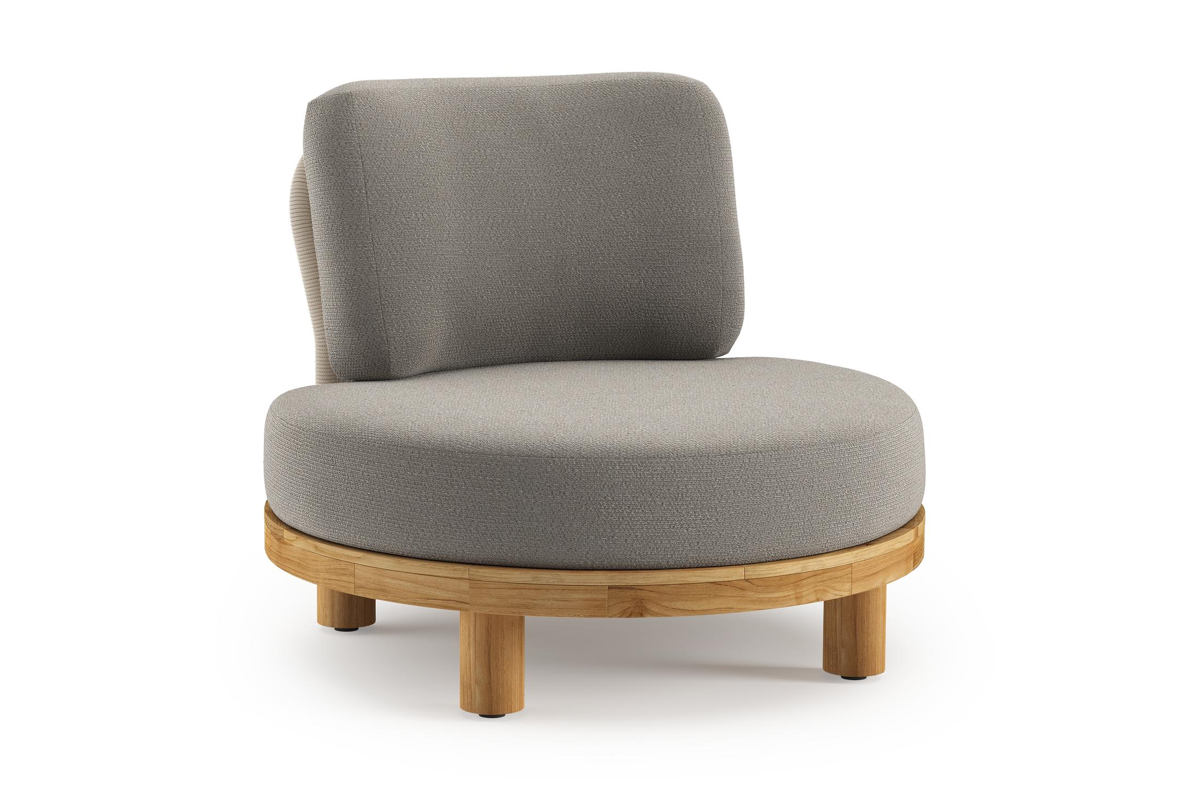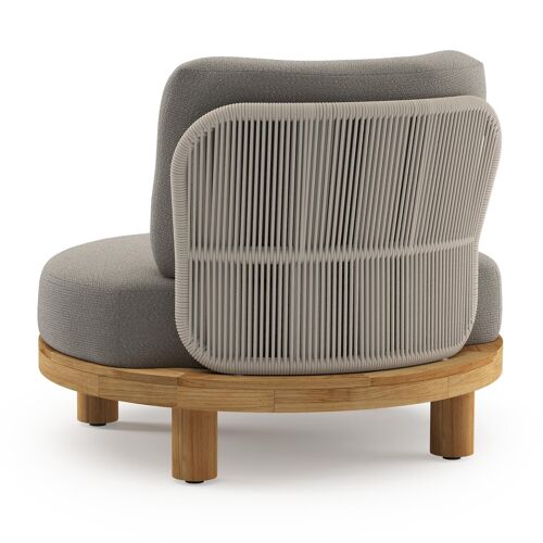 Fauteuil de jardin Donato en teck et corde ronde tissée verticalement beige et coussins en all weather sunbrella® luxe Lopi Silver | Exterioo