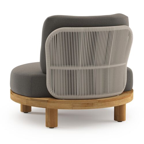 Fauteuil de jardin Donato en teck et corde ronde tissée verticalement beige et coussins en all weather sunbrella® luxe Natte Dark Taupe | Exterioo