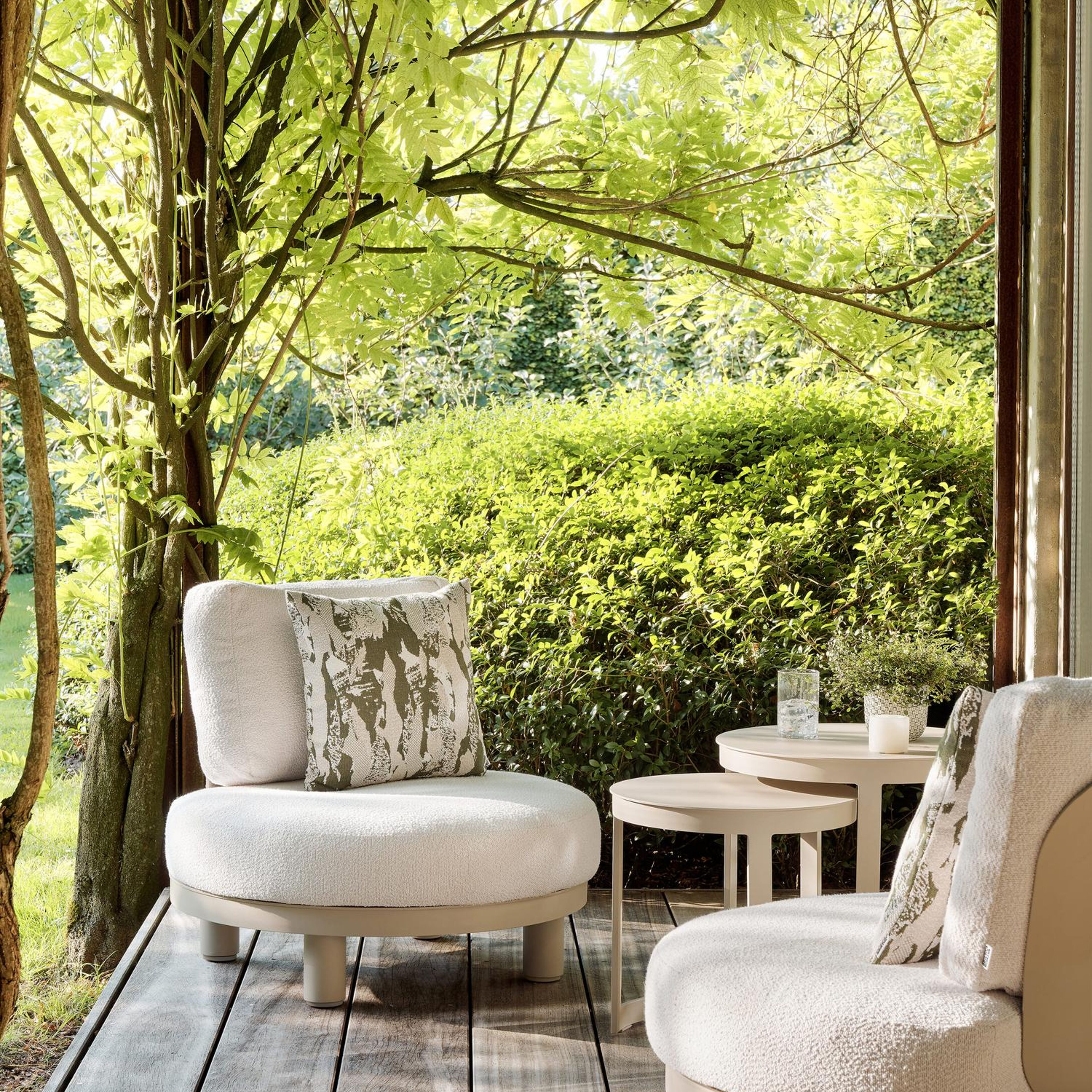 Fauteuil de jardin Donato en aluminium beige et coussins en all weather sunbrella® luxe Slow Farafra | Exterioo mobilier de jardin