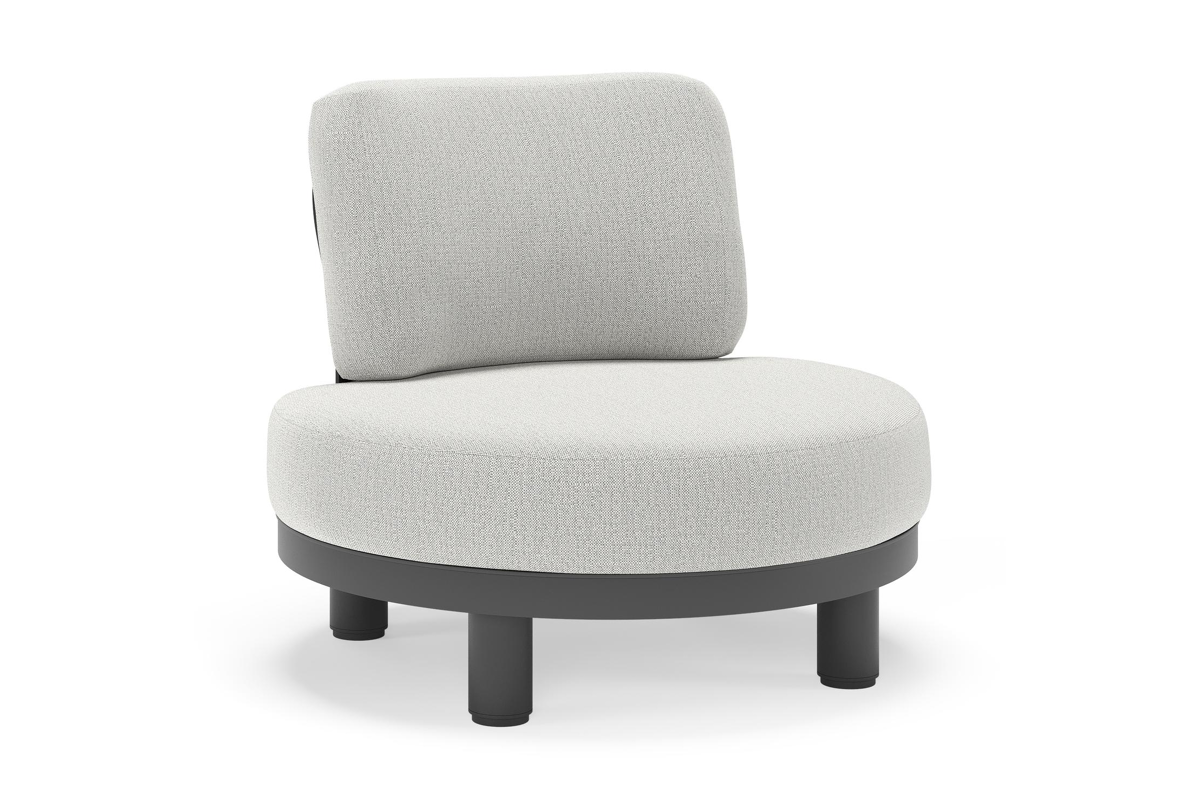 Fauteuil de jardin Donato en aluminium noir et coussins en all weather sunbrella® luxe Savane Nimbus | Exterioo