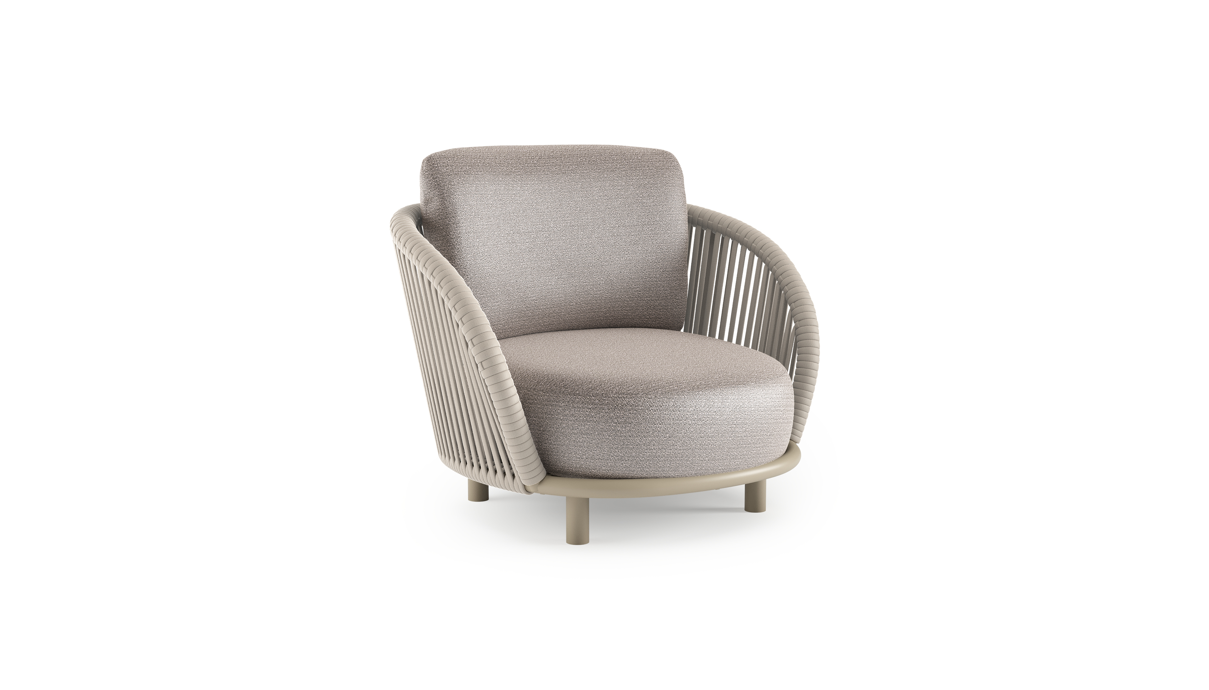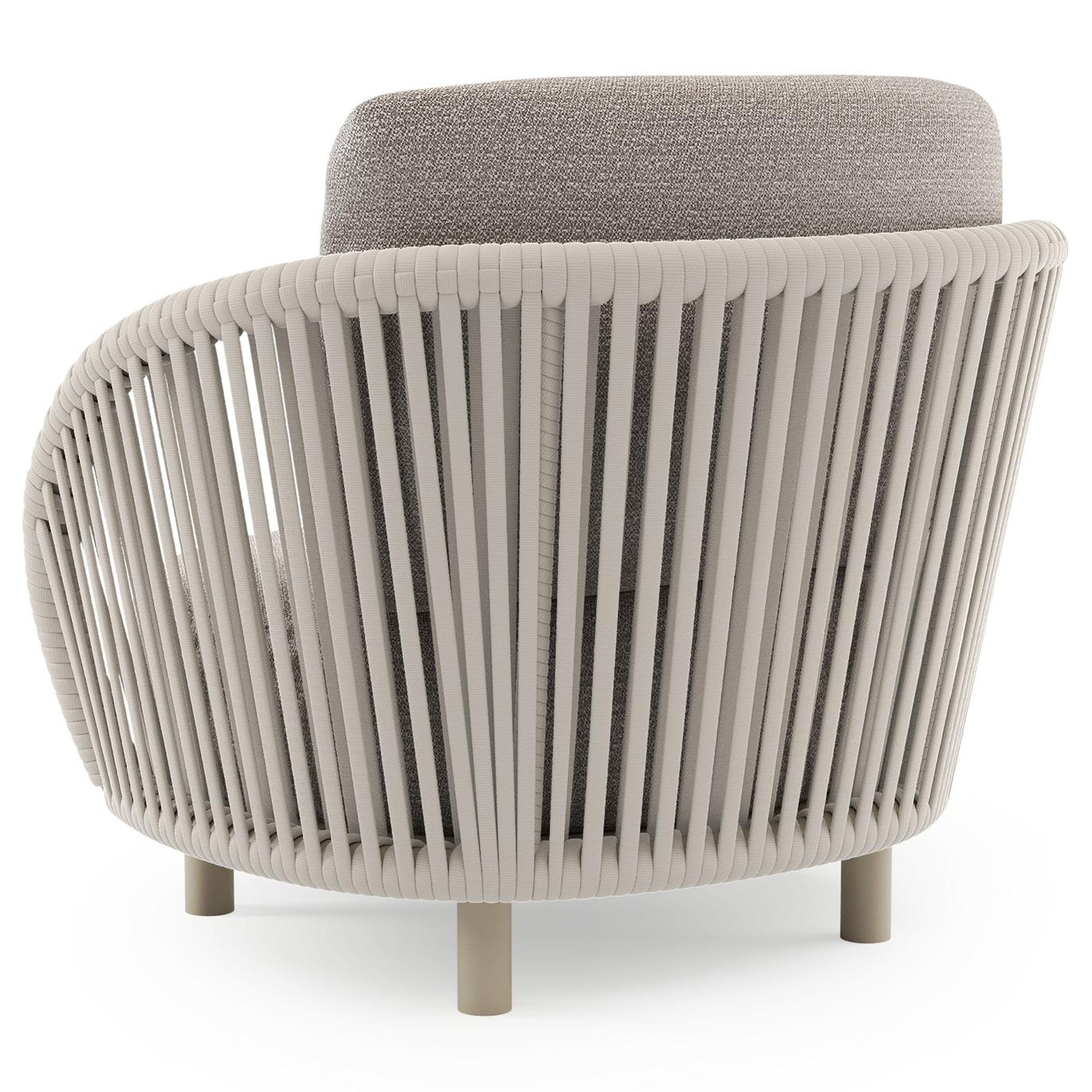 Fauteuil de jardin Lupino en aluminium beige et corde large plate de luxe tissée verticalement beige et coussins en all weather sunbrella® luxe wander granite | Exterioo mobilier de jardin