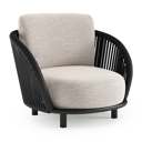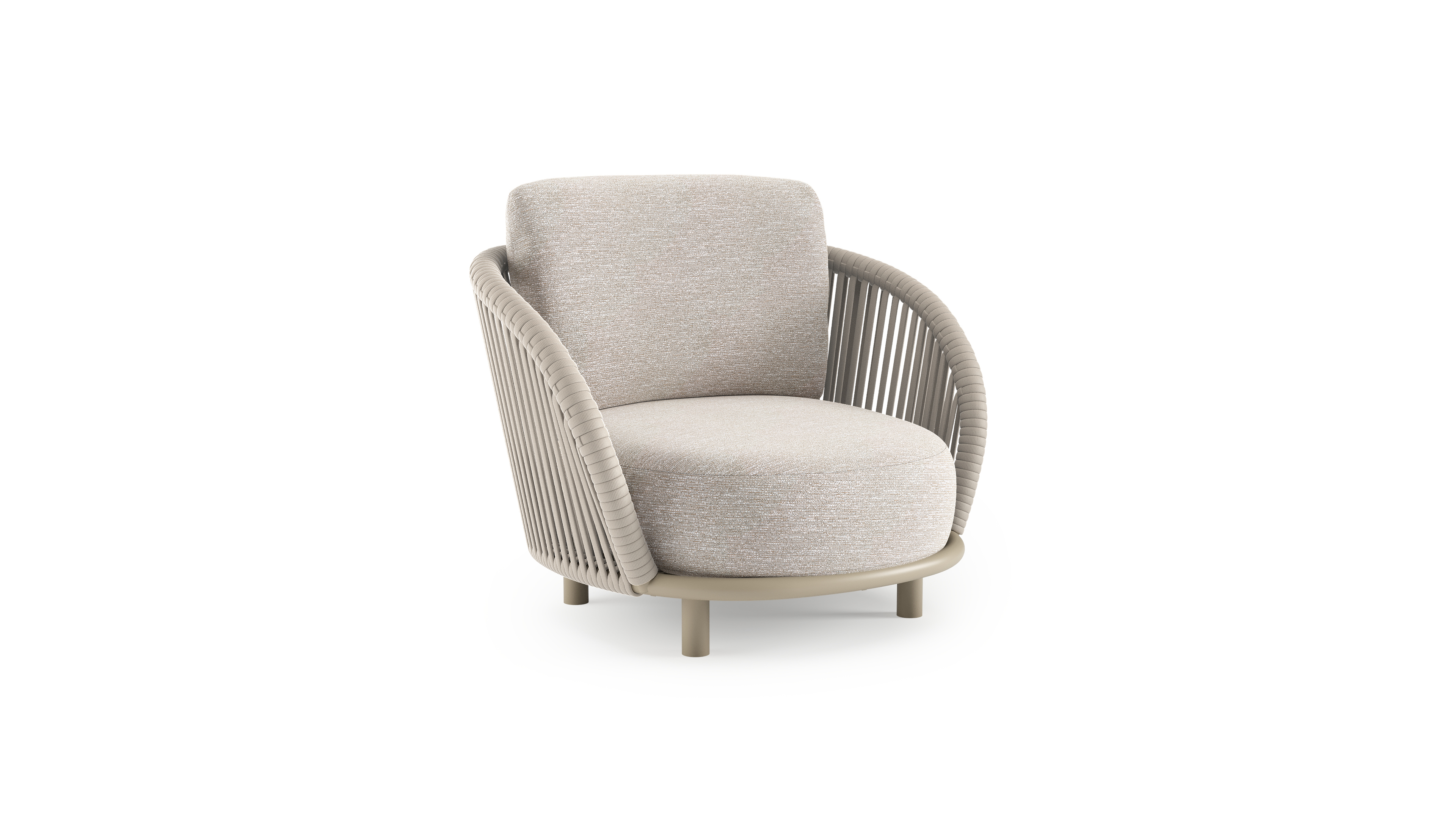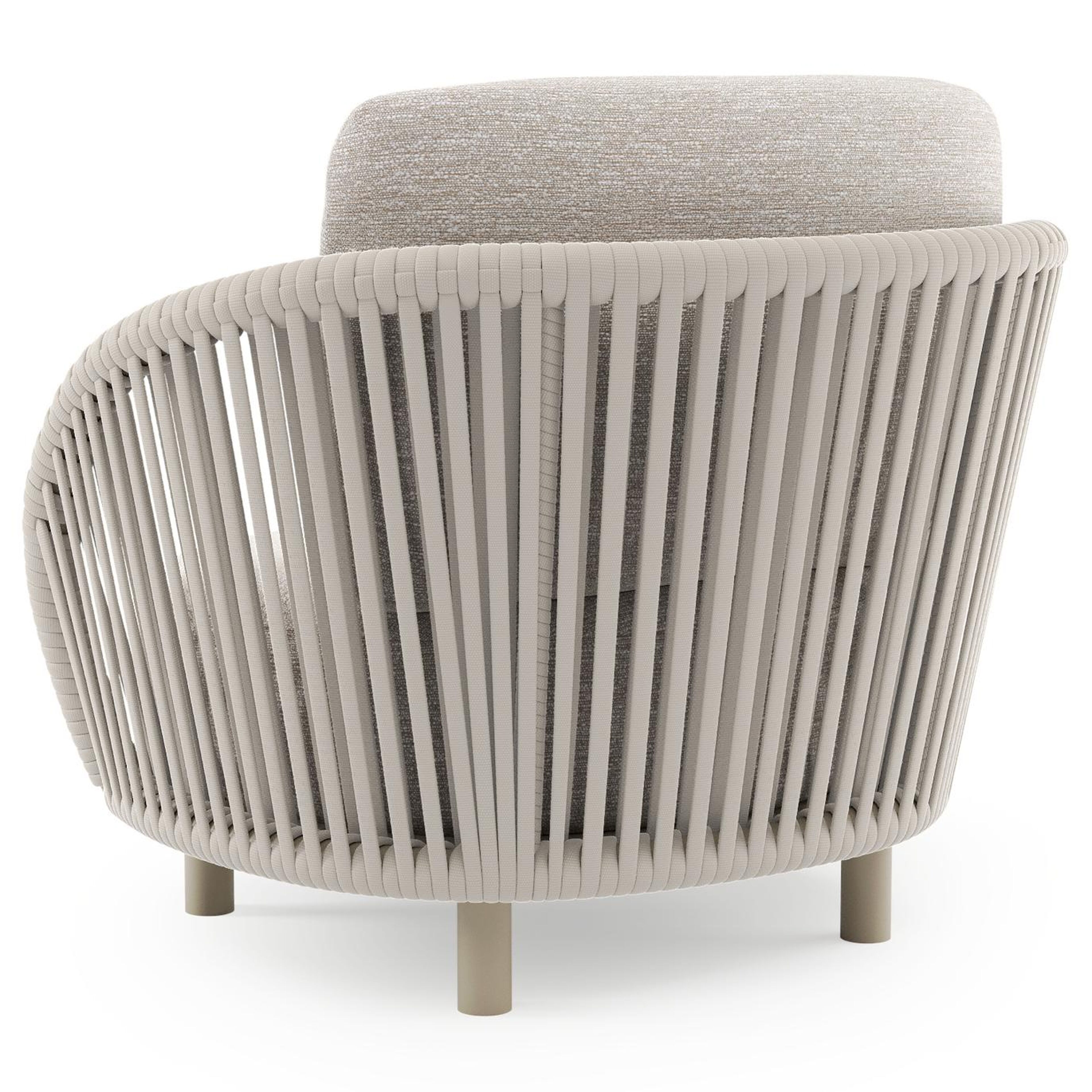 Fauteuil de jardin Lupino en aluminium beige et corde large plate de luxe tissée verticalement beige et coussins en all weather sunbrella® luxe tundra sand | Exterioo mobilier de jardin