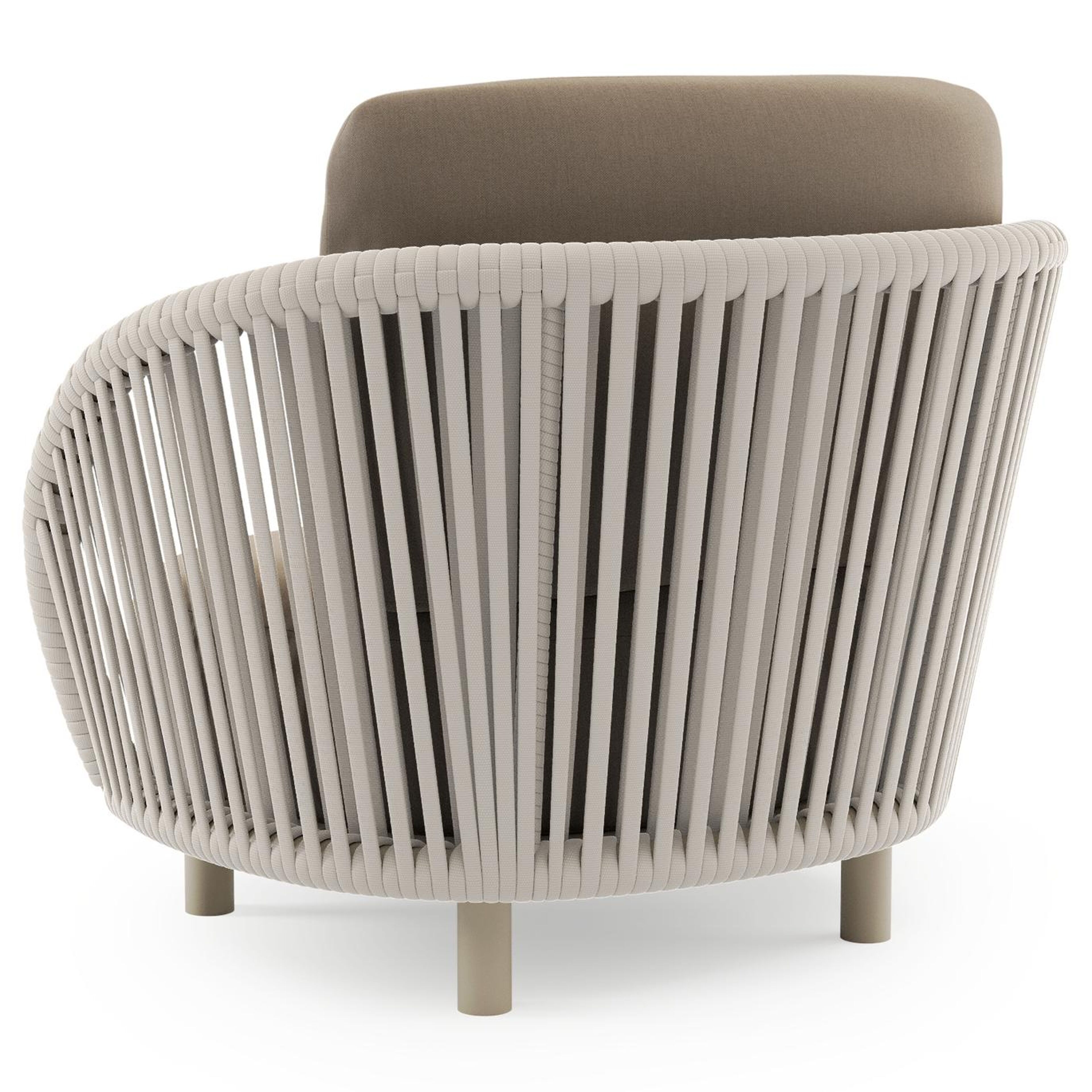Fauteuil de jardin Lupino en aluminium beige et corde large plate de luxe tissée verticalement beige et coussins en all weather sunbrella® luxe natte heather grey | Exterioo mobilier de jardin