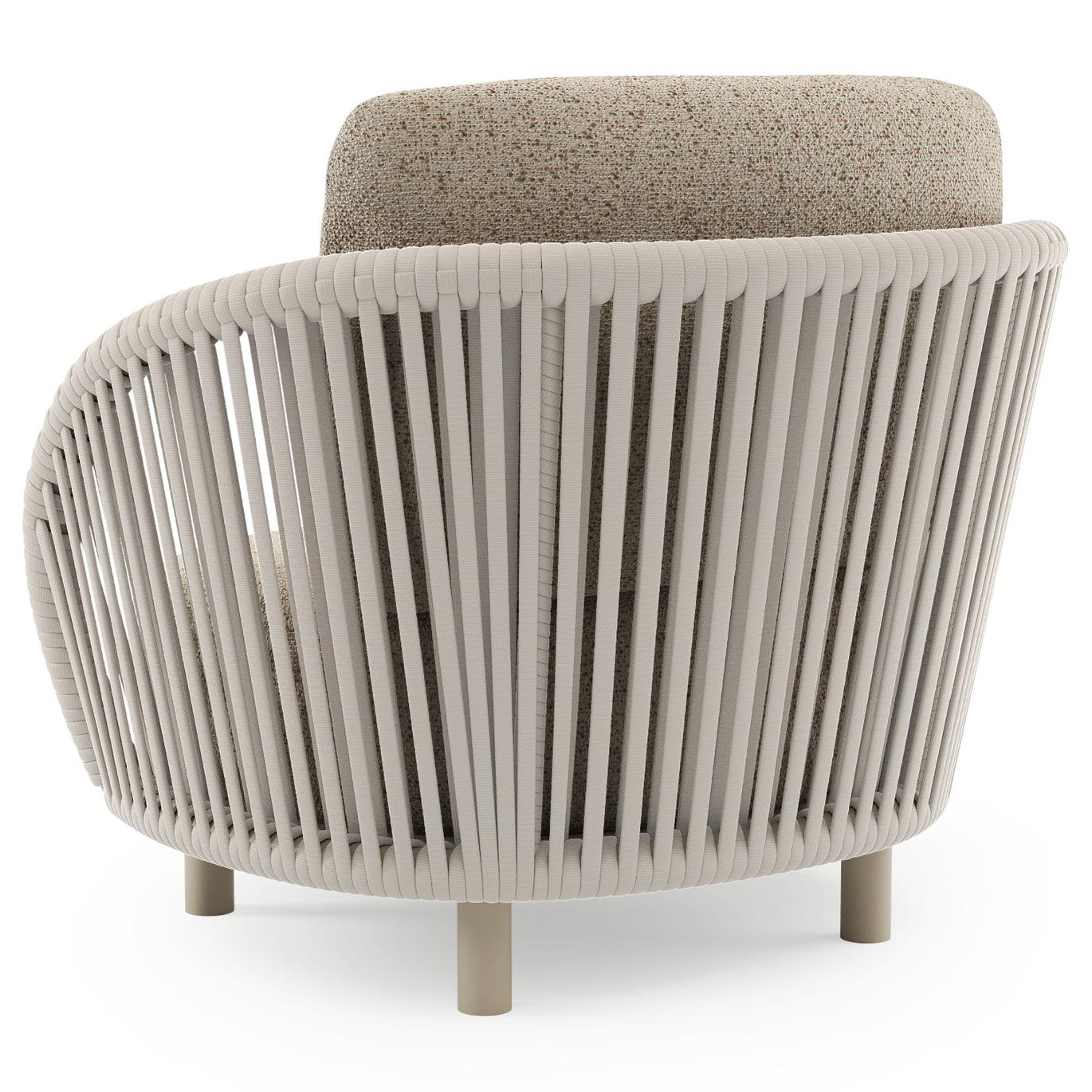 Fauteuil de jardin Lupino en aluminium beige et corde large plate de luxe tissée verticalement beige et coussins en all weather cosytica bora jungle | Exterioo mobilier de jardin