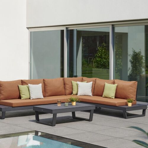 Fauteuil de jardin Modica 1-pl en aluminium noir avec coussin en weather+ softtouch pumpkin | Exterioo