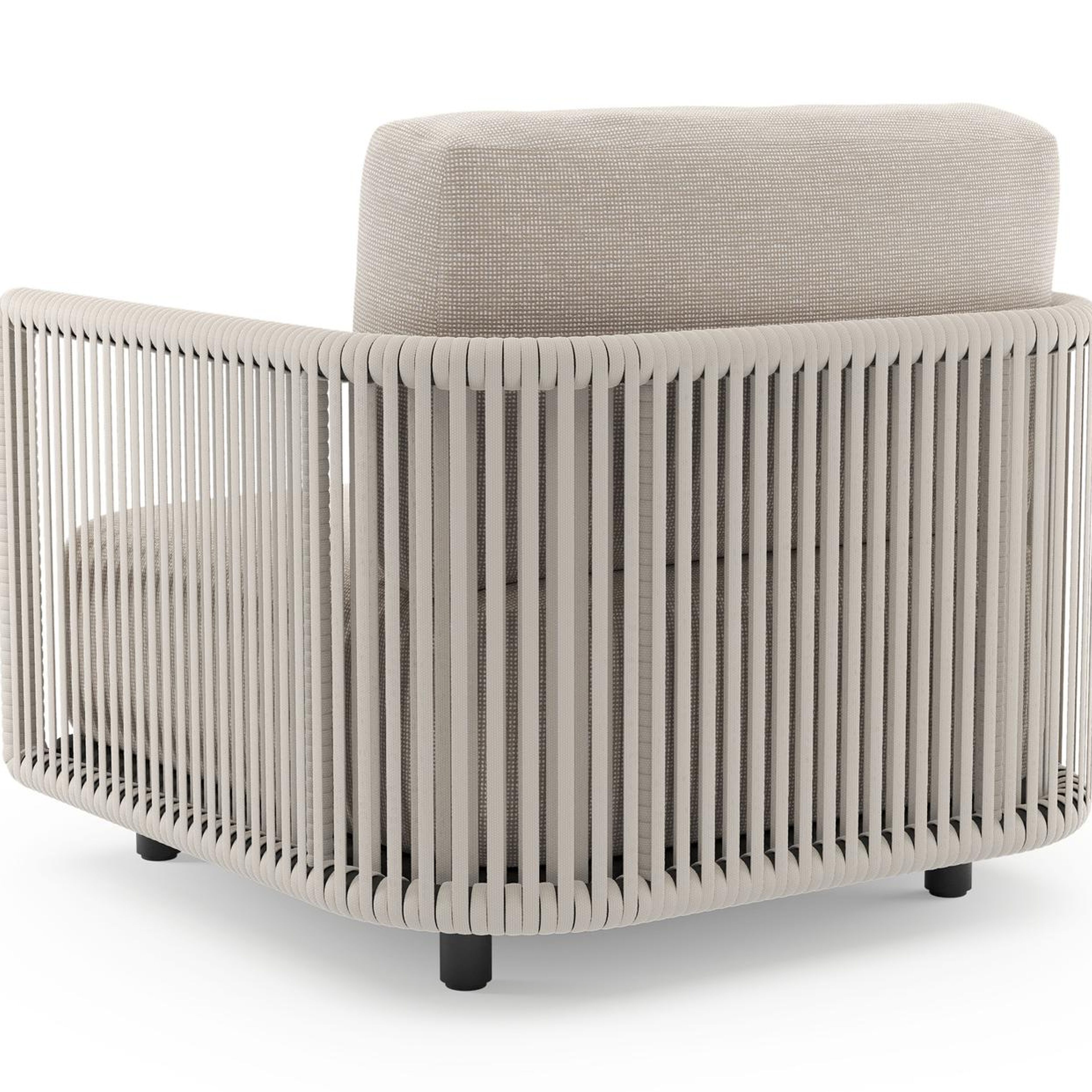 Fauteuil de jardin Organo en aluminium noir et corde luxe plate tissée verticalement beige et coussin en all weather Sunbrella® luxe slow farafra | Exterioo mobilier de jardin