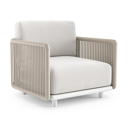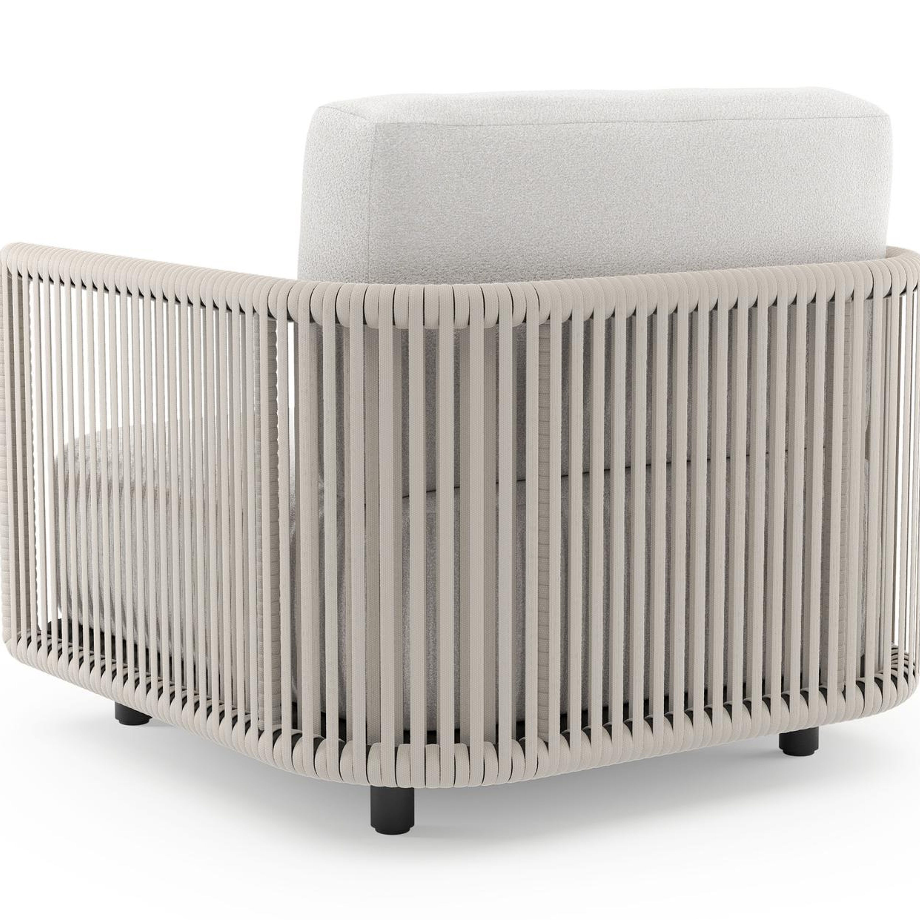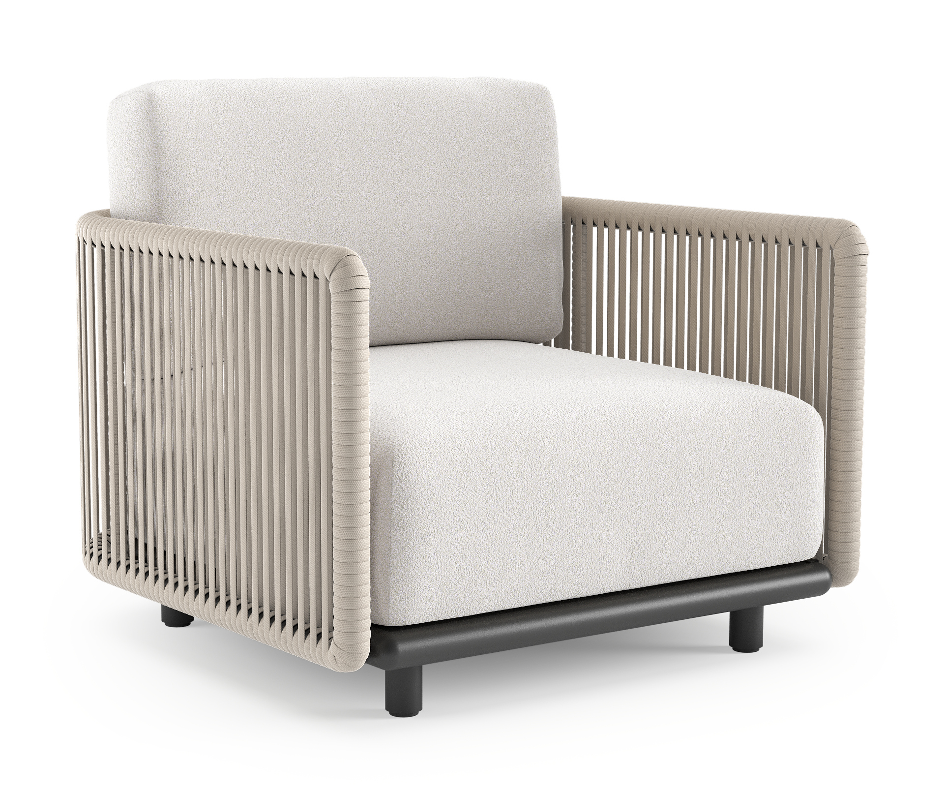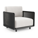 Fauteuil de jardin Organo en aluminium noir et corde luxe plate tissée verticalement beige et coussin en all weather Solica soul optik | Exterioo mobilier de jardin
