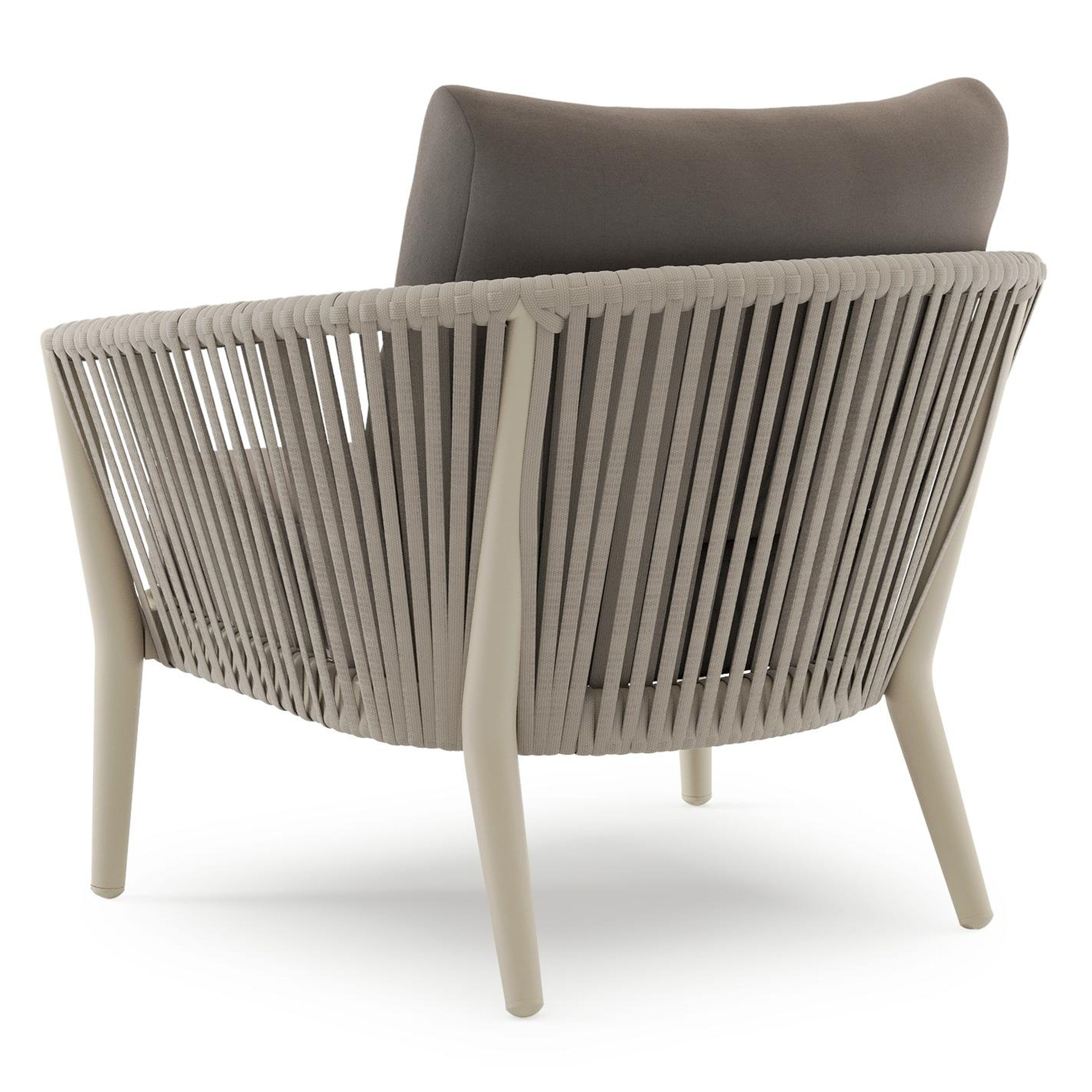 Fauteuil de jardin Orso en aluminium beige en corde luxe plate tissée verticalement beige et coussins en all weather sunbrella® luxe Natte Nature Grey | Exterioo mobilier de jardin