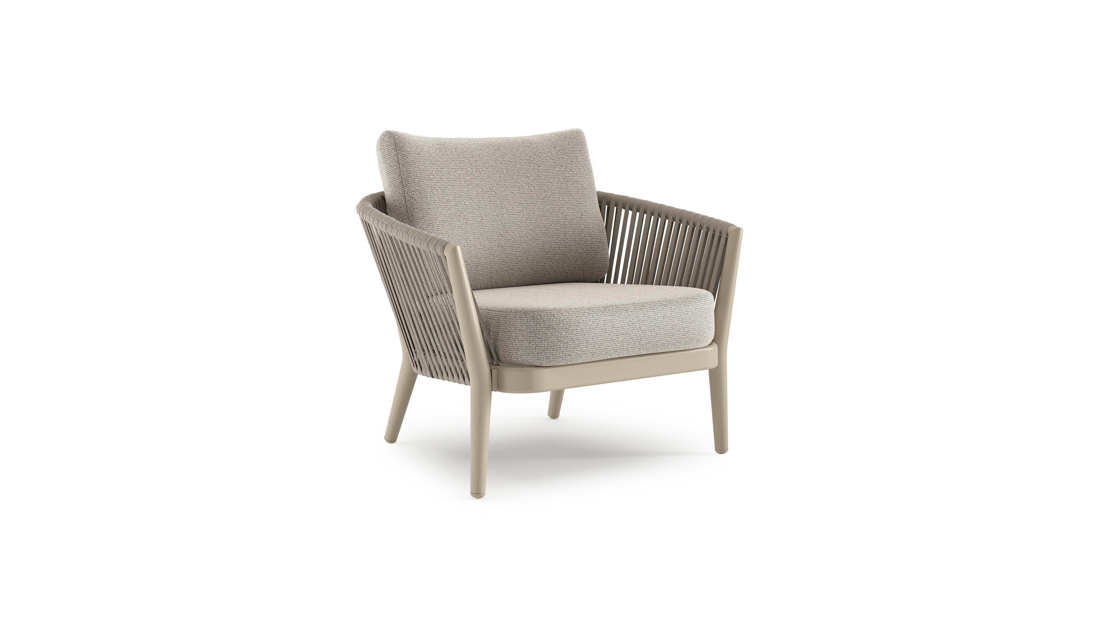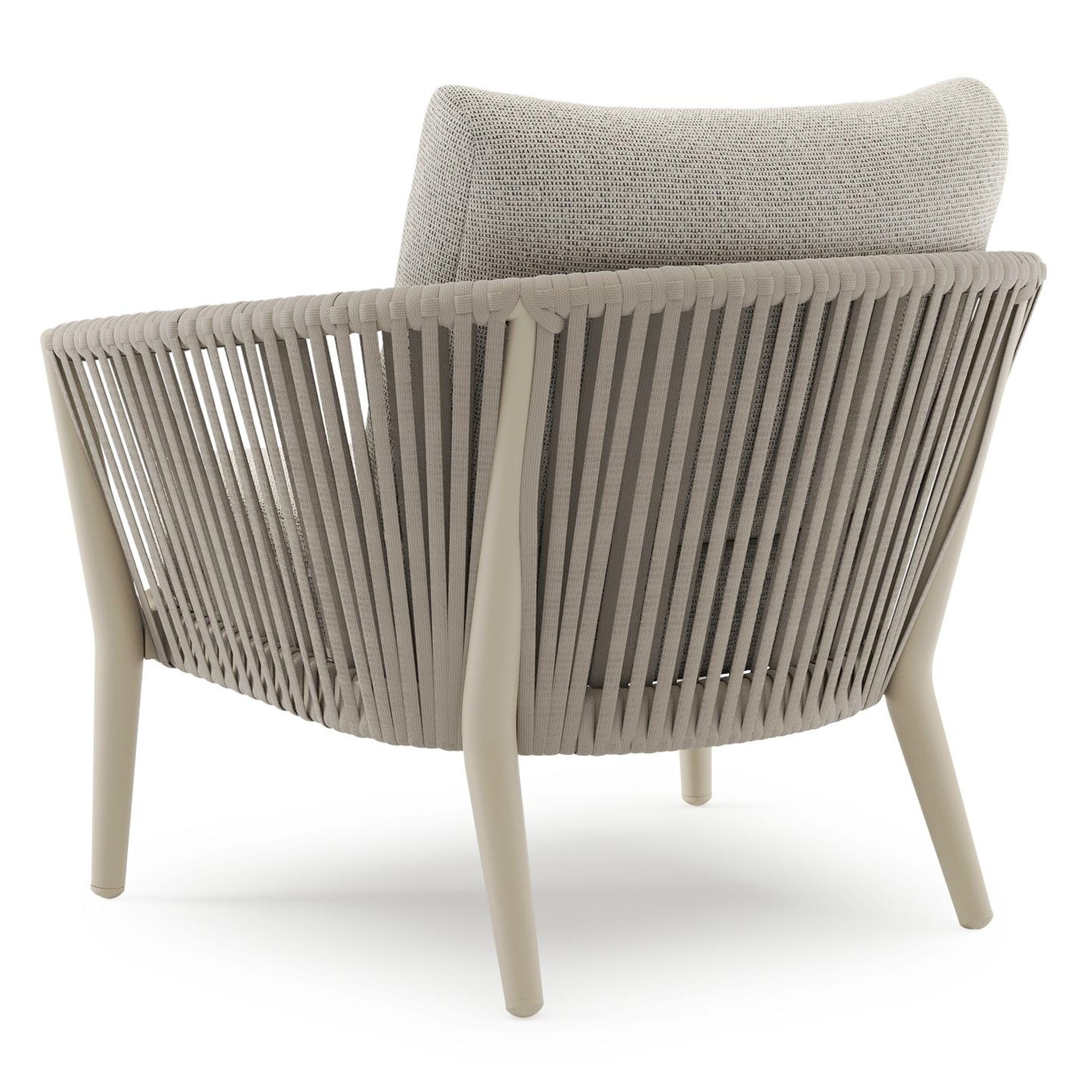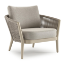 Fauteuil de jardin Orso en aluminium beige en corde luxe plate tissée verticalement beige et coussins en all weather solica Firenze Sand | Exterioo mobilier de jardin