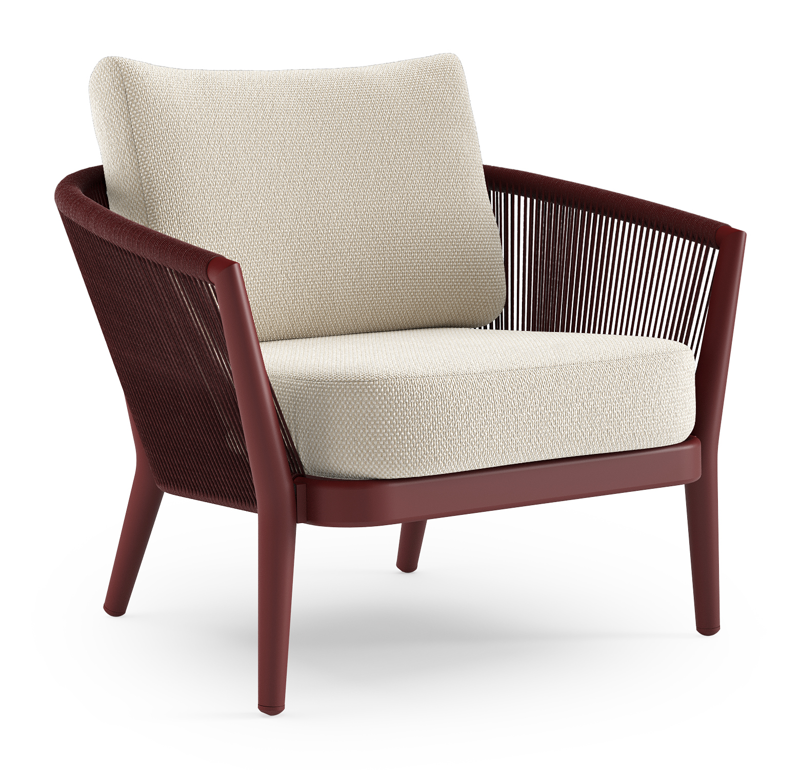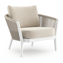 Fauteuil de jardin Orso en aluminium ruby en corde ronde tissée verticalement ruby et coussins en all weather cosytica Althea Off White | Exterioo mobilier de jardin