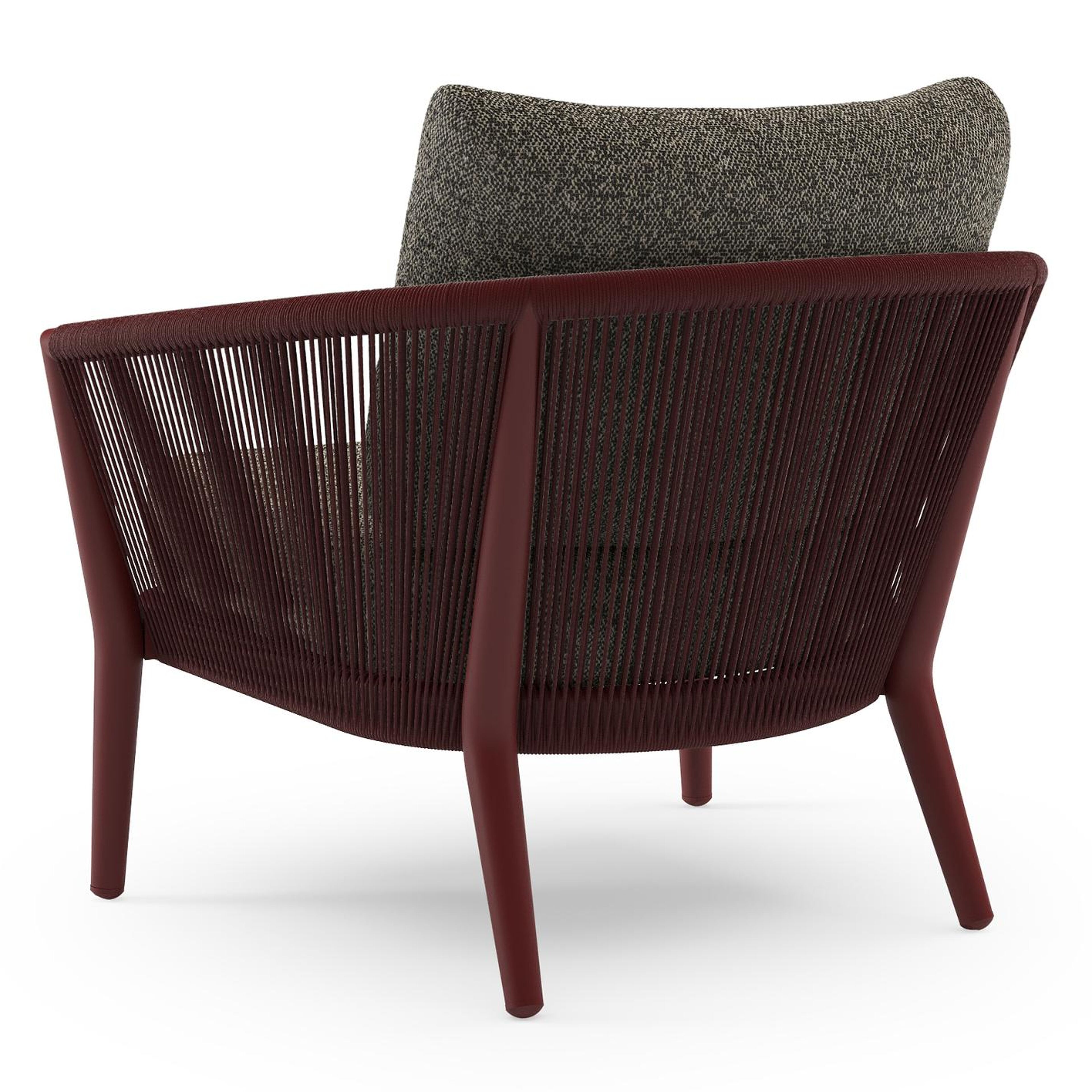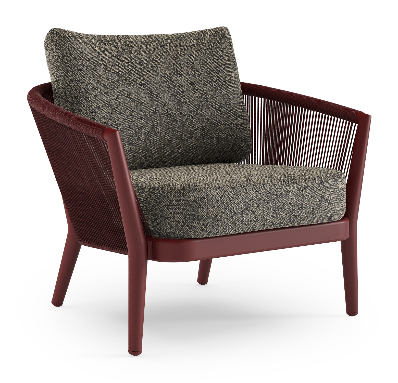 Fauteuil de jardin Orso en aluminium ruby en corde ronde tissée verticalement ruby et coussins en all weather cosytica Marbella Tunder | Exterioo mobilier de jardin