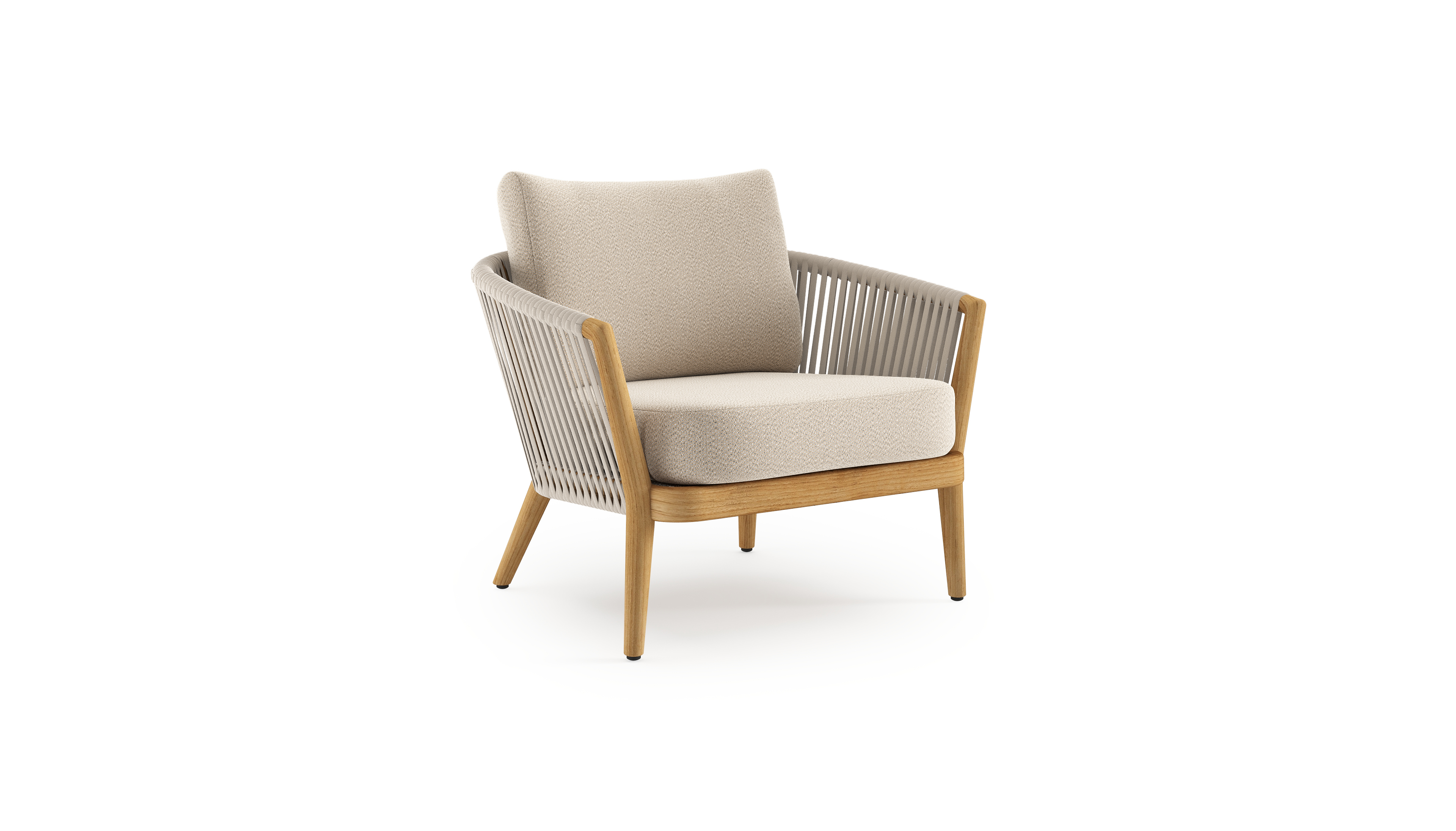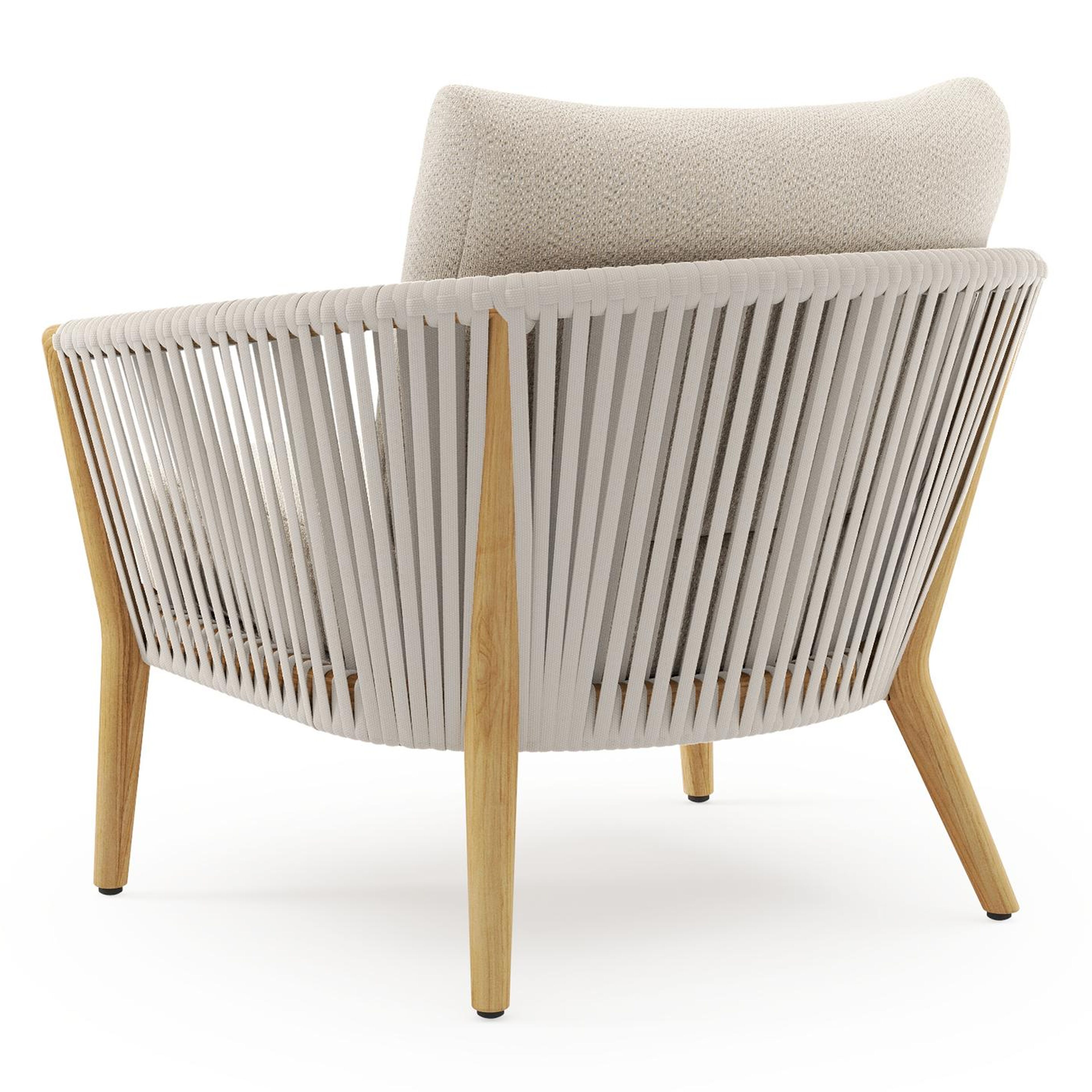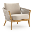 Fauteuil de jardin Orso en tecken corde luxe plate tissée verticalement beige et coussins en all weather sunbrella® luxe Lopi Sand | Exterioo mobilier de jardin