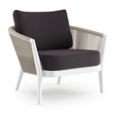 Fauteuil de jardin Orso en tecken corde ronde tissée verticalement beige et coussins en all weather sunbrella® luxe Tundra Red | Exterioo mobilier de jardin