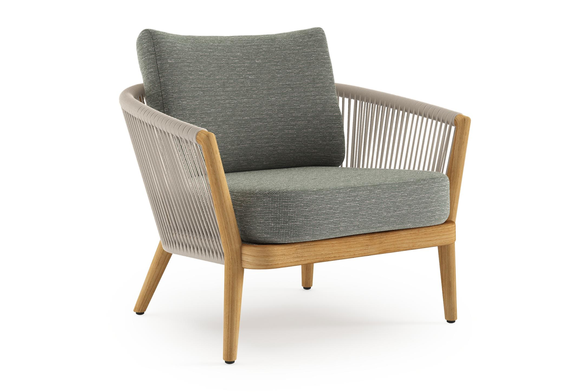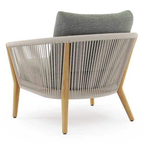 Fauteuil de jardin Orso en tecken corde ronde tissée verticalement beige et coussins en all weather sunbrella® luxe Slow Fern | Exterioo