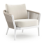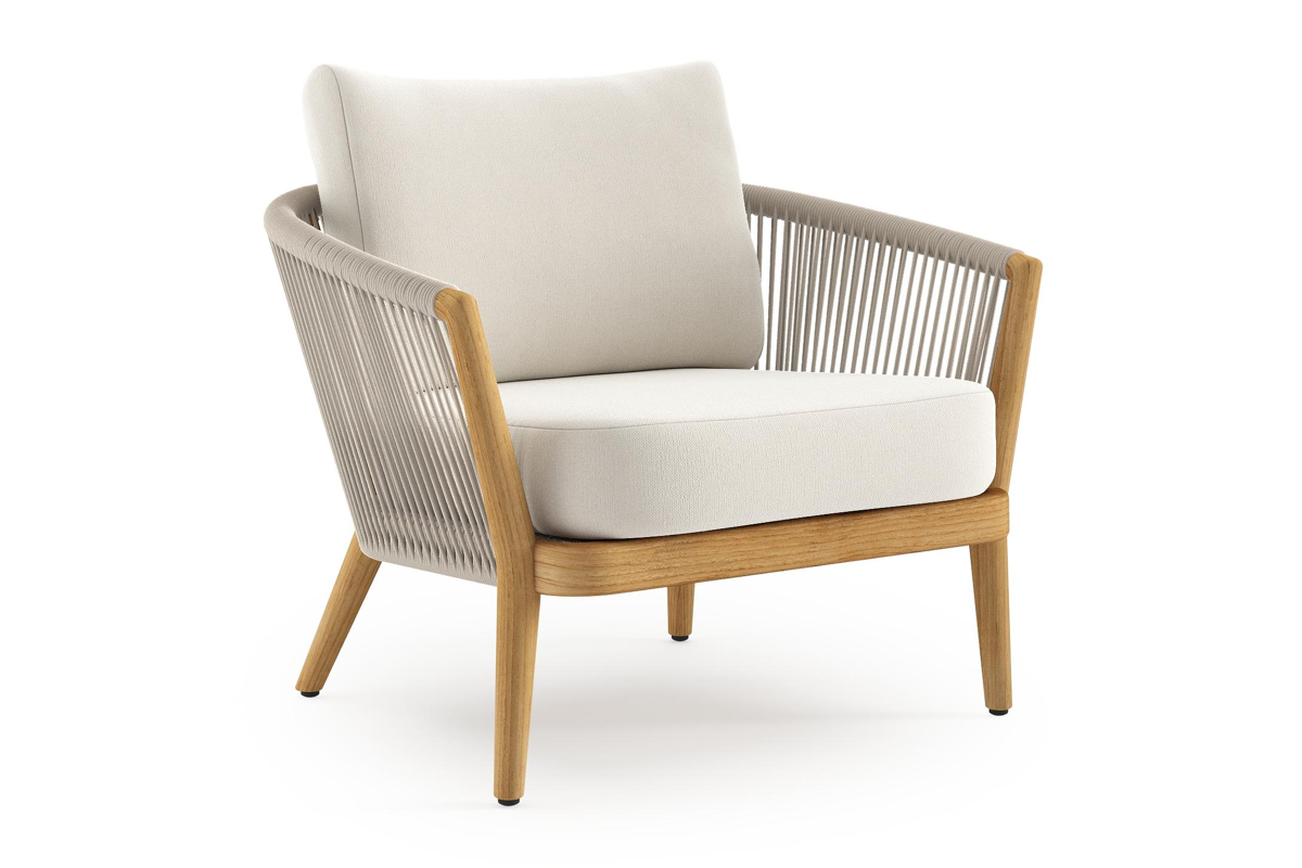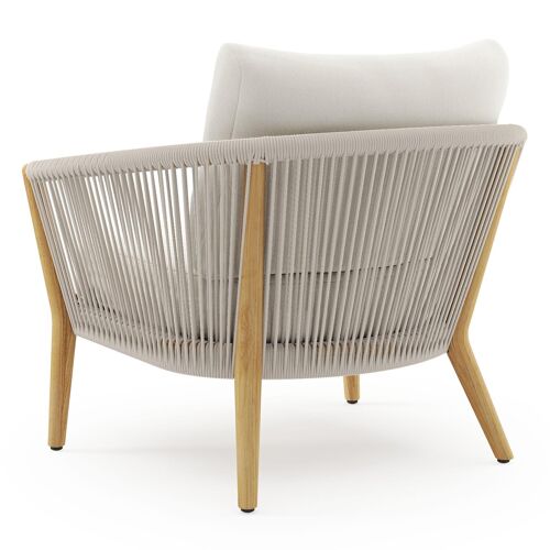 Fauteuil de jardin Orso en tecken corde ronde tissée verticalement beige et coussins en all weather sunbrella® luxe Savane White | Exterioo