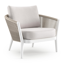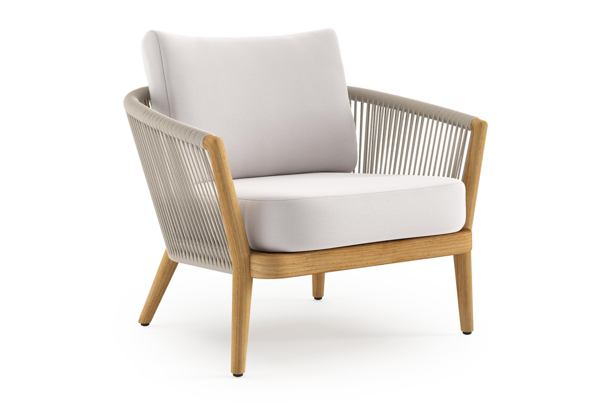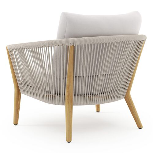 Fauteuil de jardin Orso en tecken corde ronde tissée verticalement beige et coussins en all weather sunbrella® luxe Savane Whisper | Exterioo