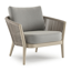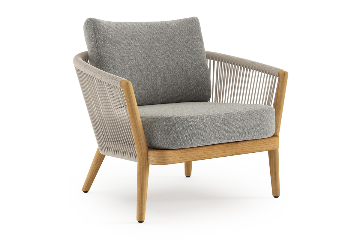 Fauteuil de jardin Orso en tecken corde ronde tissée verticalement beige et coussins en all weather sunbrella® luxe Savane Tunder | Exterioo