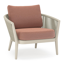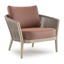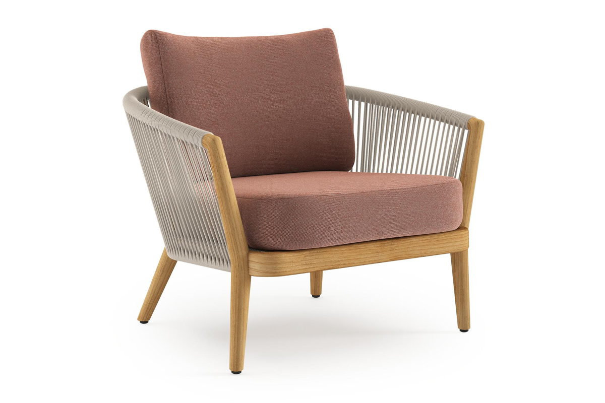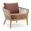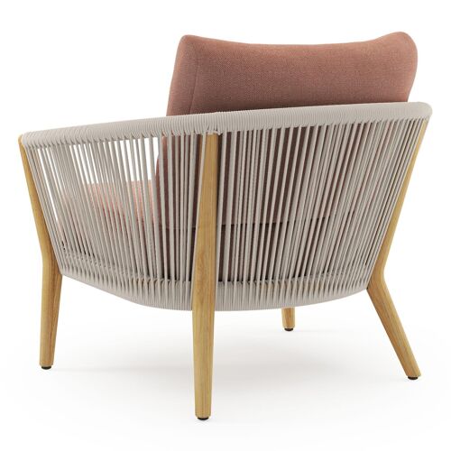 Fauteuil de jardin Orso en tecken corde ronde tissée verticalement beige et coussins en all weather sunbrella® luxe Savane Rust | Exterioo mobilier de jardin