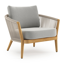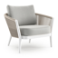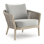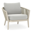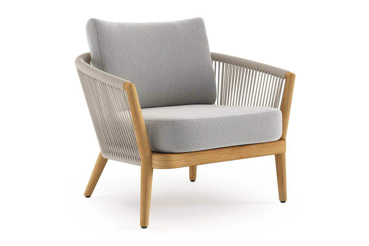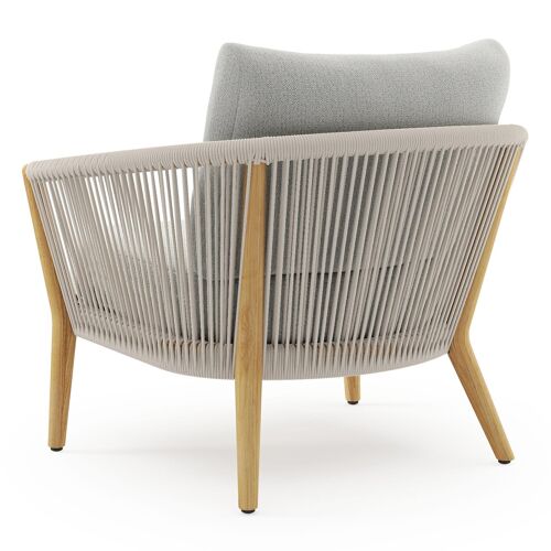 Fauteuil de jardin Orso en tecken corde ronde tissée verticalement beige et coussins en all weather sunbrella® luxe Savane Nimbus | Exterioo