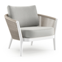 Fauteuil de jardin Orso en tecken corde ronde tissée verticalement beige et coussins en all weather sunbrella® luxe Savane Nimbus | Exterioo mobilier de jardin
