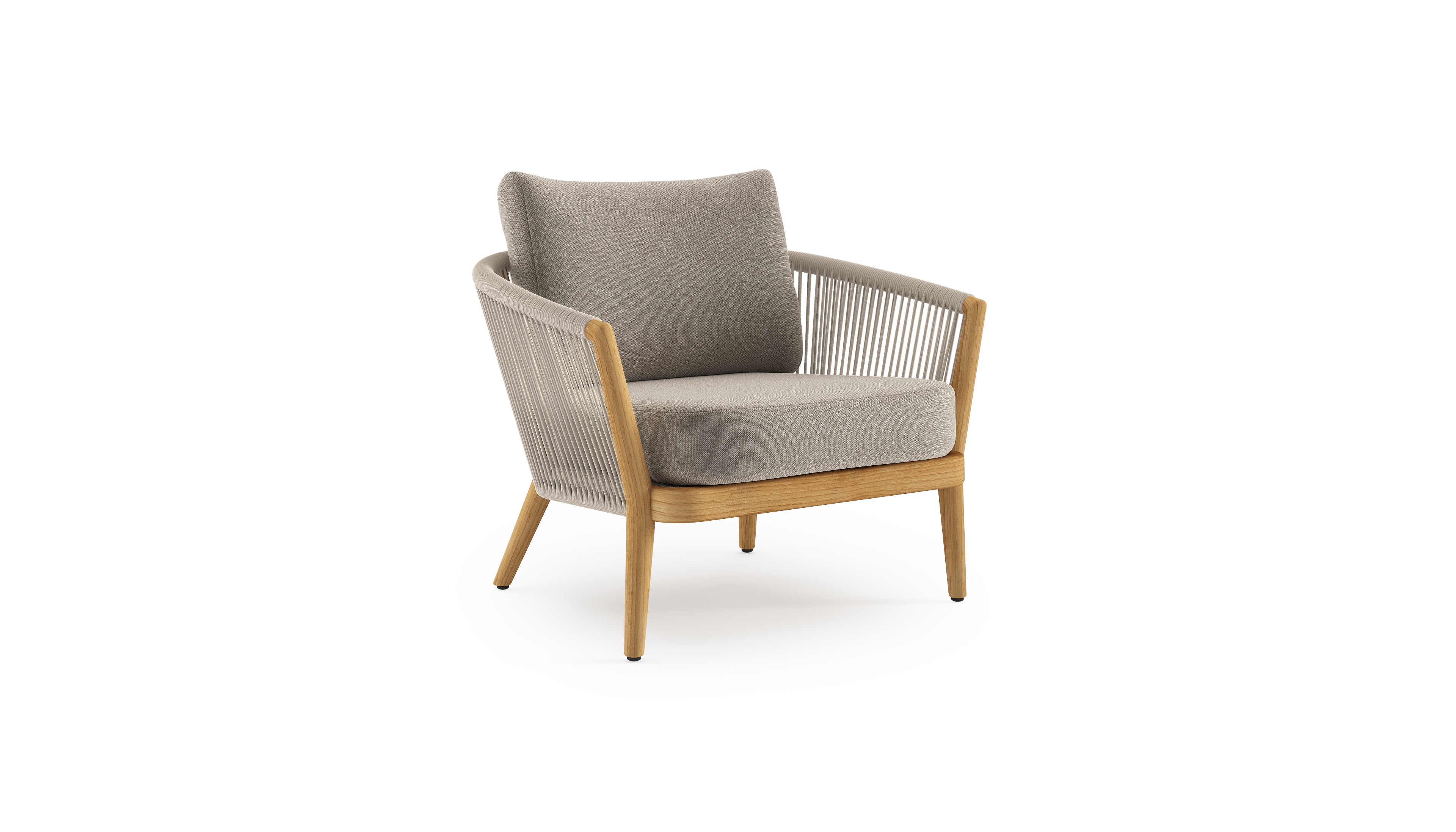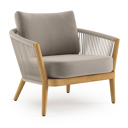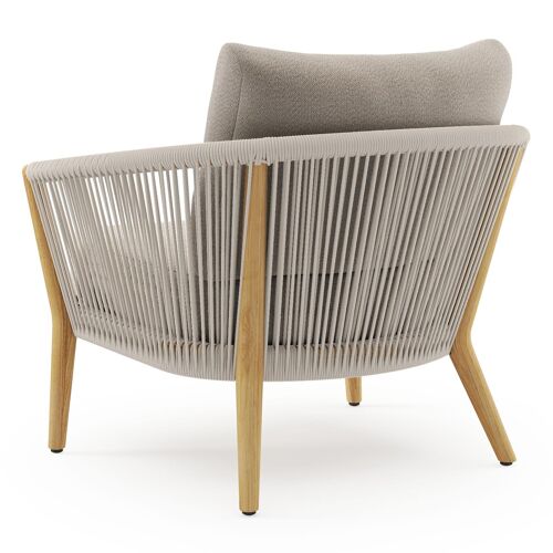 Fauteuil de jardin Orso en tecken corde ronde tissée verticalement beige et coussins en all weather sunbrella® luxe Savane Coconut | Exterioo mobilier de jardin