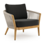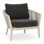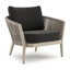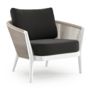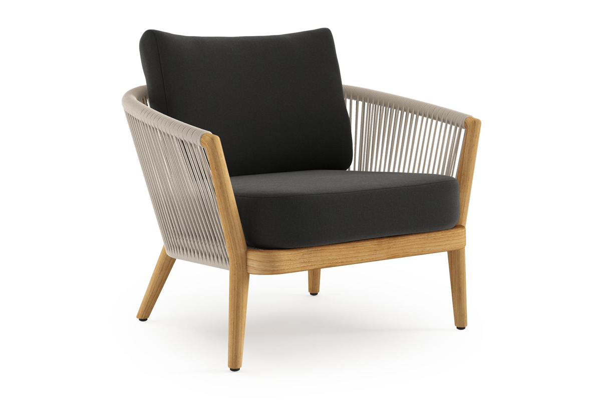 Fauteuil de jardin Orso en tecken corde ronde tissée verticalement beige et coussins en all weather sunbrella® luxe Natte Sooty | Exterioo mobilier de jardin