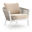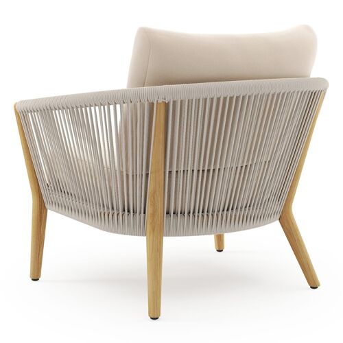 Fauteuil de jardin Orso en tecken corde ronde tissée verticalement beige et coussins en all weather sunbrella® luxe Natte Linen Chalk | Exterioo