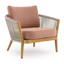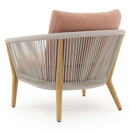 Fauteuil de jardin Orso en tecken corde ronde tissée verticalement beige et coussins en all weather sunbrella® luxe Lopi Fawn | Exterioo
